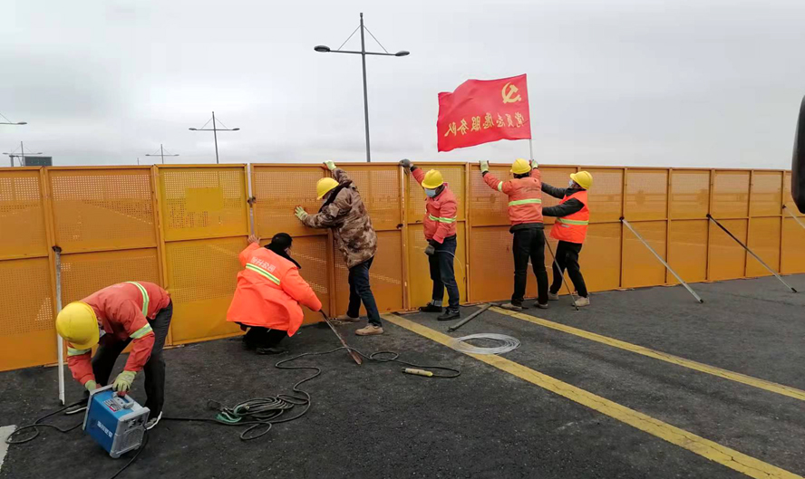 安裝加固步步到位?!敖裉焓姓趰?/span>9人?!?/span>17號一大早,市政經(jīng)理高峰就準時在公司防疫管理群里報告人數(shù)??墒谴藭r這崗位卻設(shè)在狂風凌洌、無遮無擋的海濱大道上。肆虐的狂風吹倒了許多防護欄,從清晨開始,高峰就帶領(lǐng)市政突擊隊沿著合作路、海濱大道等八個路段一路巡查一路搶修。面對狼藉的現(xiàn)場,高峰沉著冷靜,有條不紊地帶著大家用力地扶起扶正,再加樁固定。施工現(xiàn)場,風聲伴著加油的號聲、汗水伴著有節(jié)奏地敲擊聲,這場景,不正是一幅感人的“錚錚鐵骨鑄堅壁”的動人畫卷嗎?自3月5日疫情襲來,市政突擊隊就馬不停蹄地奮戰(zhàn)在新區(qū)的各個角落。施工期間,高峰他們白天黑夜地連軸轉(zhuǎn),中午來不及休息便蹲在路邊吃快餐,為了搶工期,有時竟加班到深夜12點。短短的10天,他們在做好其他市政服務(wù)工作的同時,已經(jīng)先后安裝完成了2000多米的道路圍擋,讓病疫“無路可逃”。