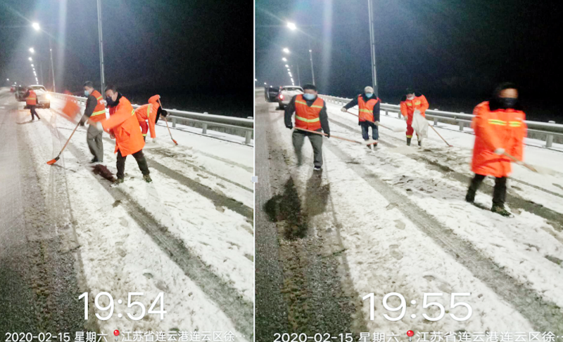 2月15日晚18:00時(shí),徐圩悅升公司班子成員及各分公司黨政負(fù)責(zé)人全員出動(dòng),帶領(lǐng)18名突擊隊(duì)員快速趕赴新區(qū)上海路、徐圩大道、徐新路、金港路等主要交通要道,連續(xù)奮戰(zhàn)4個(gè)多小時(shí),對(duì)橋梁、彎道等重點(diǎn)防滑路段進(jìn)行清雪防凍處理,共鋪灑融雪劑10余噸。“香河情緣、幸福家園”兩個(gè)職工小區(qū)防控疫情值守人員,不懼嚴(yán)寒,冒著大雪,在小區(qū)加強(qiáng)巡邏防控。該公司應(yīng)急大隊(duì)按照徐圩新區(qū)防疫指揮部要求,配合社區(qū)對(duì)珠江鋼管相關(guān)路道進(jìn)行封閉管控。
