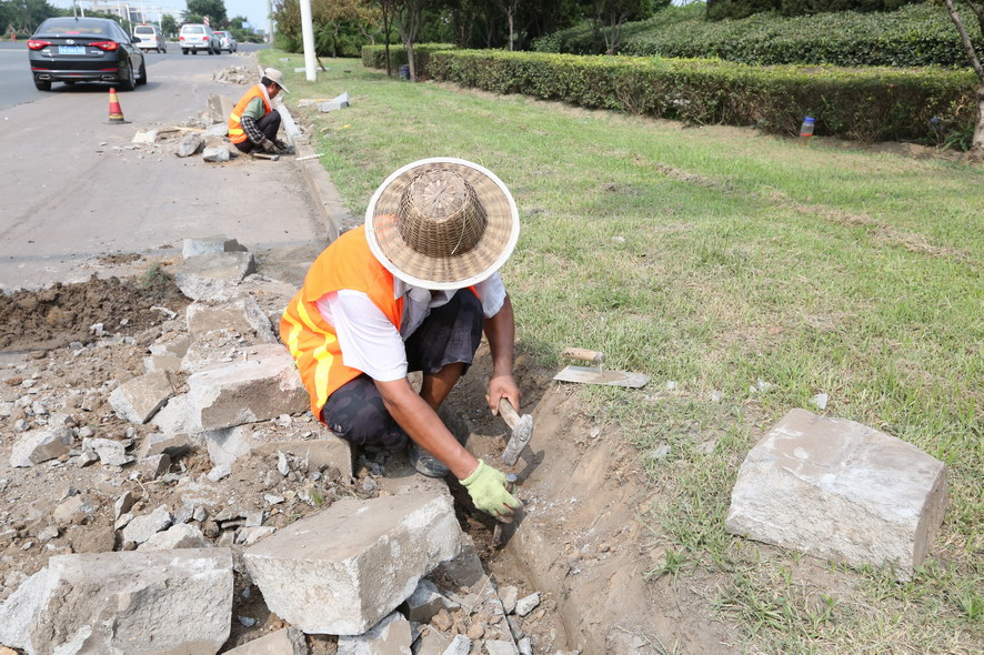 位于連云港東站附近的新光路,是開發(fā)區(qū)境內(nèi)的一條主要運(yùn)輸?shù)缆?,?jīng)常有重型卡車經(jīng)過,每天川流不息的車輛不僅給道路增加了運(yùn)載負(fù)荷,也使得道路兩旁的路牙石、人行道磚等受碾壓、撞擊、剮蹭等因素影響,破損非常嚴(yán)重。為了加快工程進(jìn)度,降低人工成本,工程項目部在該路段采取機(jī)械施工的方式,很大程度上的提高了項目進(jìn)度。在項目開展過程中,工程項目部的人員也遇到了許多的困難,新光路由于地處火車站附近,平常車流量大,在施工過程中要注意對來往車輛進(jìn)行避讓;另外,由于該路段臨近新光小區(qū)、瀾庭觀邸等住宅區(qū),早晚上下班的居民也限制了施工時間短。雖然面臨種種困難,盛達(dá)市政公司的施工人員沒有埋怨,而是想方設(shè)法去克服。自8月24日開工以來,截止目前,總長近6000米路段內(nèi)的路牙石以及人行道磚的清理工作已經(jīng)全部完成,下階段,工程項目部還將安排人員進(jìn)行新路牙石與人行道磚的更換工作,并將開展附近其他道路的修復(fù)工作,確保將“創(chuàng)衛(wèi)”工作的開展落實到實處。