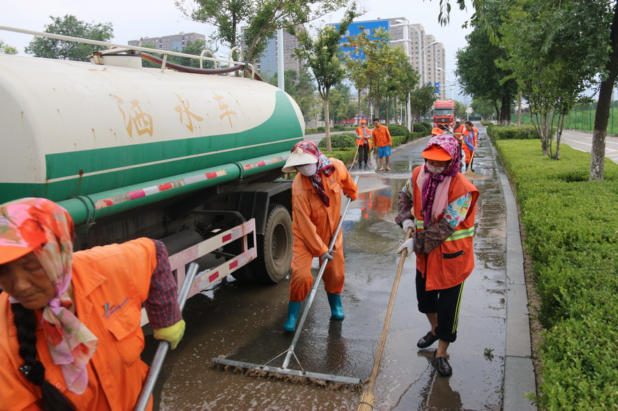 8月19日在火車站廣場及周邊路段,40多名綠化、保潔工人及灑水車、清掃車等全力保障火車站重點(diǎn)地段的環(huán)境衛(wèi)生,為過往旅客提供一個(gè)干凈整潔舒心的出行環(huán)境。據(jù)現(xiàn)場負(fù)責(zé)人龔本國介紹,隨著創(chuàng)衛(wèi)工作力度的進(jìn)一步加大,開發(fā)區(qū)對(duì)我們火車站廣場及周邊路段的環(huán)境衛(wèi)生提出了更高的要求,我們對(duì)會(huì)泉路商戶門前的綠化進(jìn)行了補(bǔ)植,種植紅葉石楠等苗木600多平方,每天專門安排一輛灑水車對(duì)火車站廣場及周邊路段進(jìn)行巡回清洗清掃,確保路面干凈無塵土,對(duì)廣場站臺(tái)、護(hù)欄、果皮箱、路燈桿、花壇進(jìn)行清理擦洗,對(duì)下水道進(jìn)行清掏,蓋板更換維修。為確保創(chuàng)衛(wèi)工作任務(wù)高標(biāo)準(zhǔn)高質(zhì)量完成,連日來,綠化養(yǎng)護(hù)、環(huán)衛(wèi)保潔工人天天早上6點(diǎn)上班,到晚上10點(diǎn)下班,中午吃飯休息只有一個(gè)小時(shí),每天工作10多個(gè)小時(shí),為創(chuàng)衛(wèi)工作做了很多實(shí)實(shí)在在的事情,他們真的很不易,很辛苦,只因有了他們的辛勤勞動(dòng)、無私奉獻(xiàn),城市環(huán)境衛(wèi)生才會(huì)越來越好。