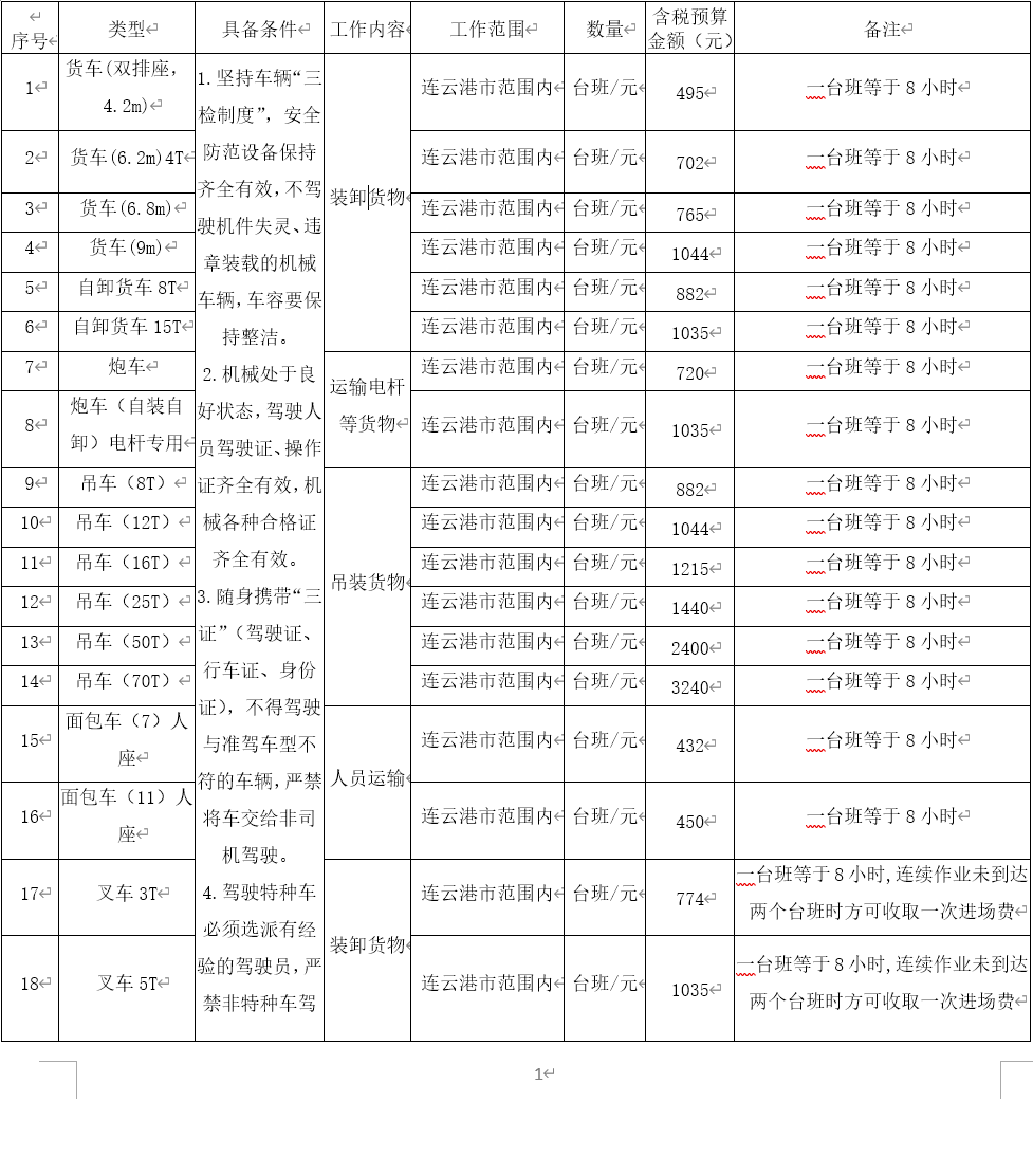 1.項(xiàng)目名稱:連云港市工投集團(tuán)供電分公司機(jī)械、車(chē)輛租賃服務(wù)外包項(xiàng)目
