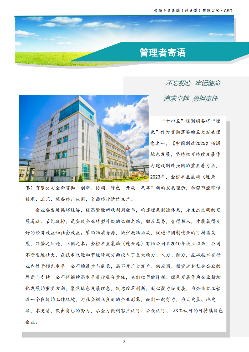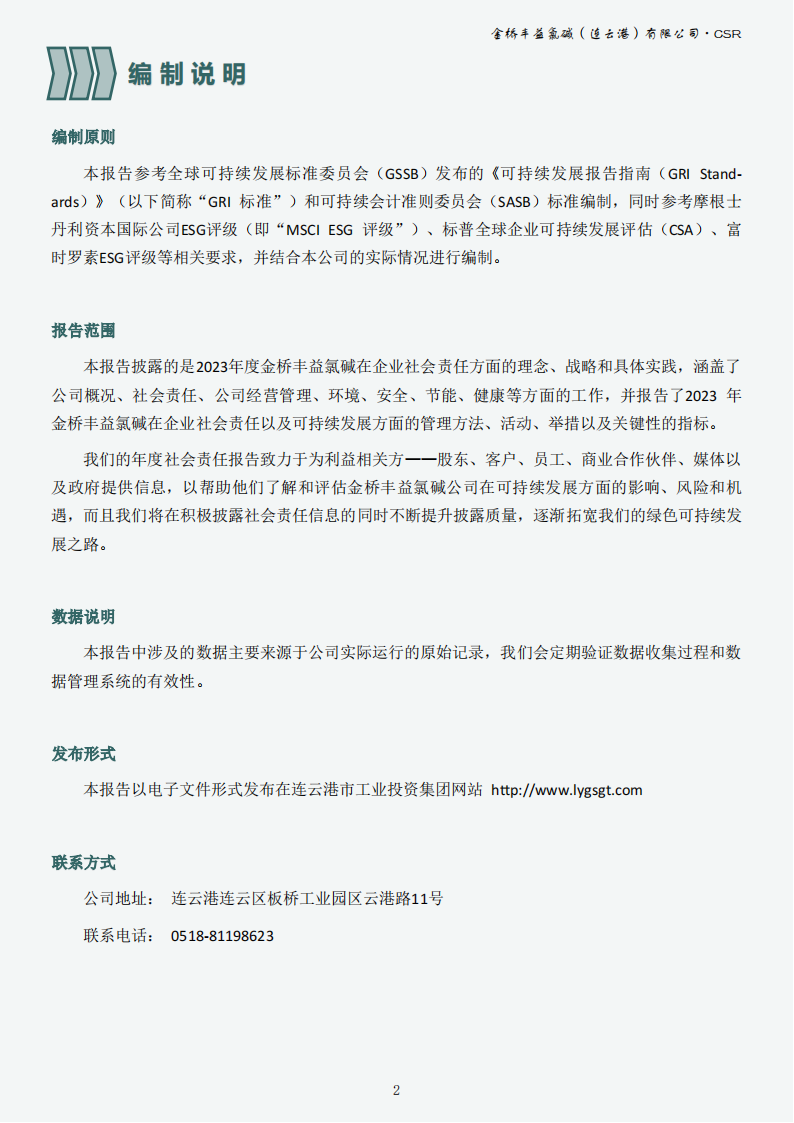金橋豐益氯堿(連云港)有限公司2023年可持續(xù)發(fā)展報告公示