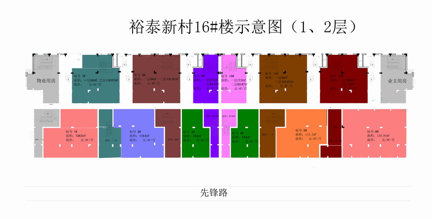 出租裕泰新村16#樓1、2層房屋,建筑面積約為1762.78平方米。其中1層建筑面積為995.66平方米,設(shè)有6個標(biāo)段(標(biāo)號1#-6#);1-2層建筑面積767.12平方米,設(shè)有6個標(biāo)段(標(biāo)號7#-12#),共計(jì)12個標(biāo)段(見附件4)。意向報(bào)名人可在招租公告發(fā)布5日內(nèi)前往進(jìn)行實(shí)地考察。