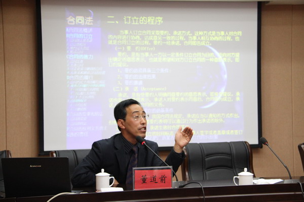11月2日下午,公司在淮鹽大酒店召開黨委中心組學(xué)習(xí)《合同法》擴(kuò)大會議,邀請連云港師專董道前教授講課。公司領(lǐng)導(dǎo)班子全體成員、各基層單位領(lǐng)導(dǎo)班子成員、公司機關(guān)全體管理人員、天然居管理人員參加學(xué)習(xí)。(司宣)