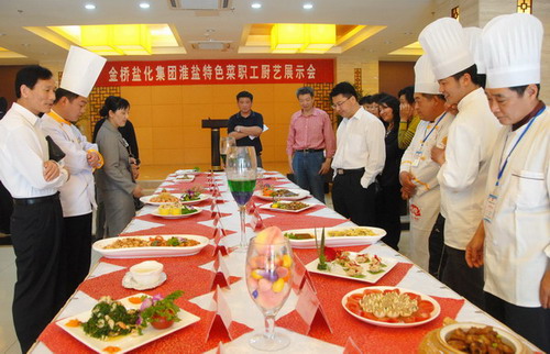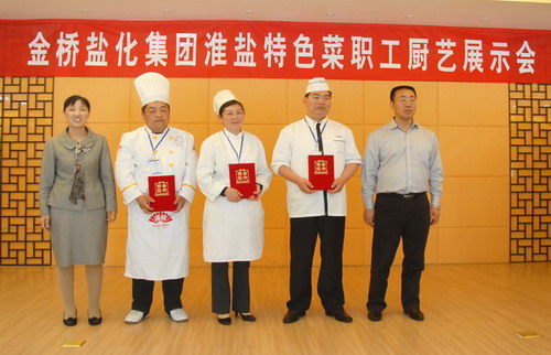 5月19日上午,金橋鹽化集團(tuán)淮鹽特色菜職工廚藝展示會(huì)在淮鹽大酒店隆重舉辦。公司黨委副書(shū)記、紀(jì)委書(shū)記、工會(huì)主席盧明生致歡迎詞,集團(tuán)公司工會(huì)副主席李嵐芹宣布比賽開(kāi)始。來(lái)自集團(tuán)公司各基層單位的13名技藝精湛的廚師做出了26道特色佳肴,經(jīng)過(guò)評(píng)委會(huì)認(rèn)真品評(píng),臺(tái)南鹽場(chǎng)王樹(shù)偉、青口鹽場(chǎng)盧燕獲一等獎(jiǎng),其他選手分獲二、三等獎(jiǎng)。(司宣)