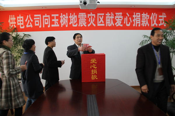 大災(zāi)面前有大愛(ài),青海玉樹(shù)地區(qū)突發(fā)的7.1級(jí)地震震驚了全國(guó)人民,也深深牽動(dòng)著公司干部職工的心。4月29日下午,公司機(jī)關(guān)開(kāi)展向玉樹(shù)地震災(zāi)區(qū)捐款活動(dòng),干部職工積極參與,黨員還主動(dòng)繳鈉特殊黨費(fèi),向?yàn)?zāi)區(qū)人民表達(dá)真摯愛(ài)心。目前已收到捐款8000余元。(司宣)