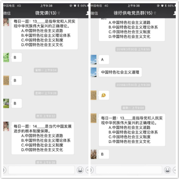 為促進(jìn)黨員更好的了解十九大精神,切實(shí)做到學(xué)懂弄通做實(shí),公司黨委充分發(fā)揮微信網(wǎng)絡(luò)平臺(tái)靈活便捷、互動(dòng)性強(qiáng)的優(yōu)勢(shì),開展了“微考堂”“每日一題”學(xué)習(xí)活動(dòng)。公司黨群工作部每日通過(guò)微信群出題,大家搶答。題目緊扣十九大會(huì)議精神、習(xí)總書記講話精神、新黨章等重點(diǎn)內(nèi)容,并定期組織黨員開展網(wǎng)絡(luò)答題考核,確保黨員真學(xué)真做。(電宣)