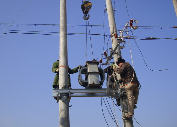 黃化制鈣公司居民區(qū)已有三十多年歷史,目前居住400多戶居民。由于使用年久老化,變壓器容量小、供電半徑大,線路長、線徑細,電壓不穩(wěn),供電效率低。加上居民生活水平提高,用電量增加,供電矛盾日益突出,嚴重影響空調(diào)、冰箱等家用電器正常使用,居民意見很大??紤]到這項工程需投資資金較大,而老居民區(qū)情況復雜、經(jīng)濟上大多比較困難,為快速化解居民用電矛盾,讓他們過上祥和、舒心的春節(jié),臺北供電所自籌資金,領導親自到現(xiàn)場勘察,擬定整改方案。該所人員全部出動,雇用工具車三臺、吊車兩輛,運送一臺100千伏安變壓器、兩個配電箱和10根電桿,自帶導線等材料趕赴施工現(xiàn)場。在居民的支持和配合下,克服了巷口復雜、圍墻歪斜、樹枝凌亂、布局很不規(guī)則等困難,奮戰(zhàn)多日,安裝一臺新變壓器,將原來的一條線進入改為三條線進入,增加供電功率,擴大供電容量。通過進戶測試,均達到用電標準,給居民帶來了冬天的溫暖。