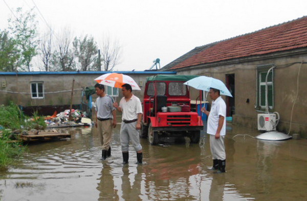 7月9日上午一上班,宋跳農(nóng)場(chǎng)場(chǎng)長(zhǎng)趙懷忠?guī)ьI(lǐng)任志明、駱功勛、孫習(xí)年、于懷前等同志檢查場(chǎng)區(qū)和居民區(qū)。在整個(gè)暴雨過程中,居民區(qū)房屋沒有發(fā)生險(xiǎn)情,但地面積水較多,對(duì)個(gè)別居民用電不符合規(guī)范的,要求立即整改。清源水泥制品廠的石棉瓦大棚局部有坍塌危險(xiǎn),該場(chǎng)當(dāng)時(shí)就下發(fā)整改通知單,限期7月20日前完成。農(nóng)戶棉花地局部受淹,農(nóng)田積水于當(dāng)天下午基本排掉。場(chǎng)區(qū)基本沒有積水,但辦公室在暴雨過程中有漫水現(xiàn)象。職工上班后,清掃辦公室衛(wèi)生,陸續(xù)恢復(fù)正常辦公。(任志明)