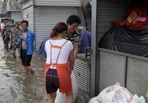 近日,面對百年一遇的特大暴雨,巨龍市場職工吃住在市場,全力進(jìn)行防汛排澇。