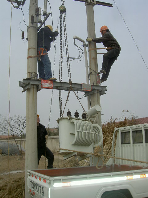 春節(jié)前夕,徐圩供電所加大電力設(shè)備和線路巡視維護(hù)力度,將預(yù)防大面積停電事故作為節(jié)前安全生產(chǎn)的首要任務(wù)。該所認(rèn)真組織人員深入轄區(qū)查找線路和設(shè)備存在的安全隱患,提前作好安排和準(zhǔn)備,2月5日發(fā)現(xiàn)辛高圩地區(qū)99#變壓器節(jié)日期間容量可能不夠,便及時調(diào)換了變壓器,確保用電安全。(圖為該所職工在調(diào)換變壓器)(馬德松)
