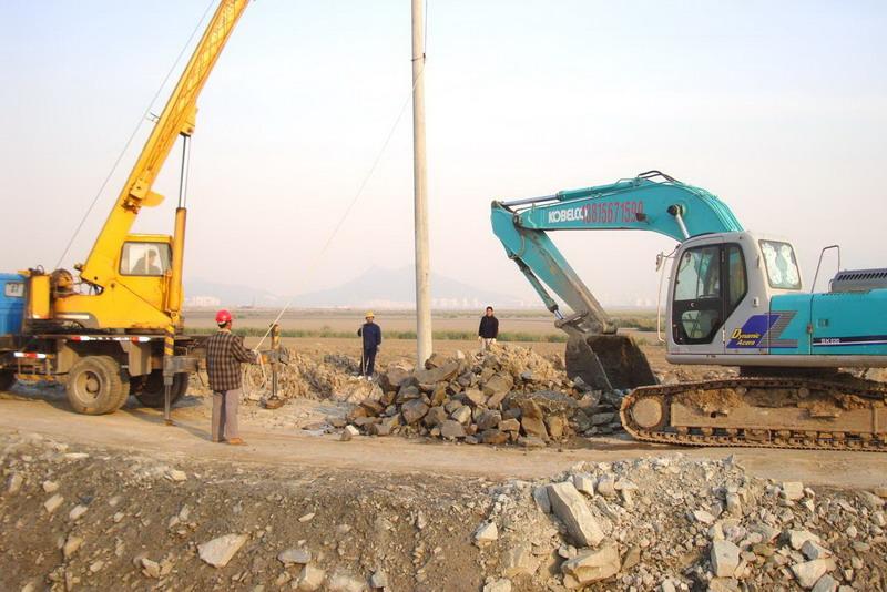 日前,臺(tái)北供電所承接的中交一航二公司向海灘延伸供電線路工程開工建設(shè)。中交一航二公司擔(dān)負(fù)著新港城圍海造地的重任,需要架設(shè)3公里10千伏高壓線路和變壓器等保障施工用電。圖為供電所工人正在架設(shè)電桿。(李吉成)