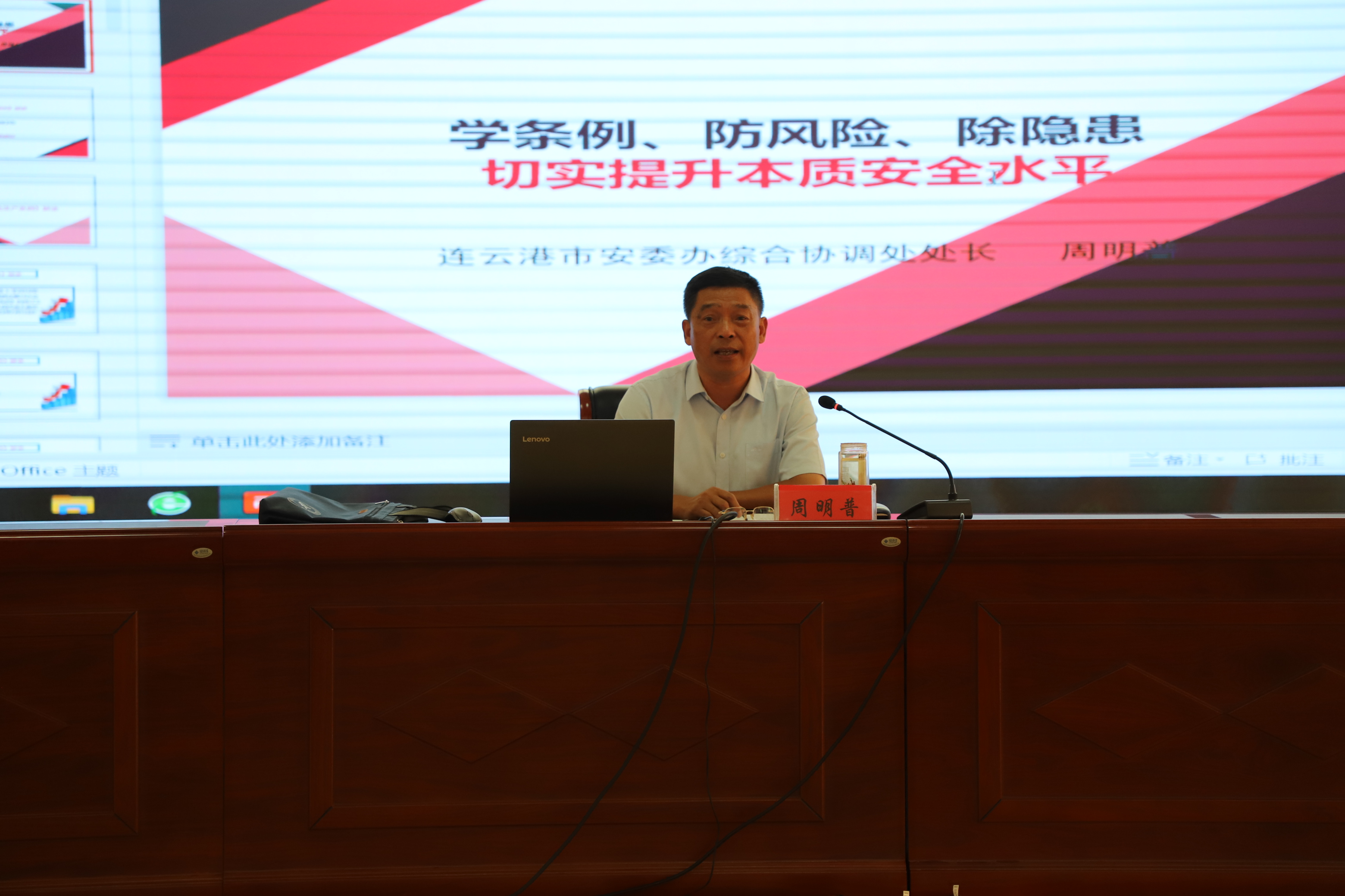 周處長對新《江蘇省安全生產(chǎn)條例》、安全生產(chǎn)重大事故隱患排查整治專項行動、突出抓好當(dāng)前安全管理重點防范建議作了深入淺出的講解,同時結(jié)合我公司實際,提出很多建設(shè)性意見。