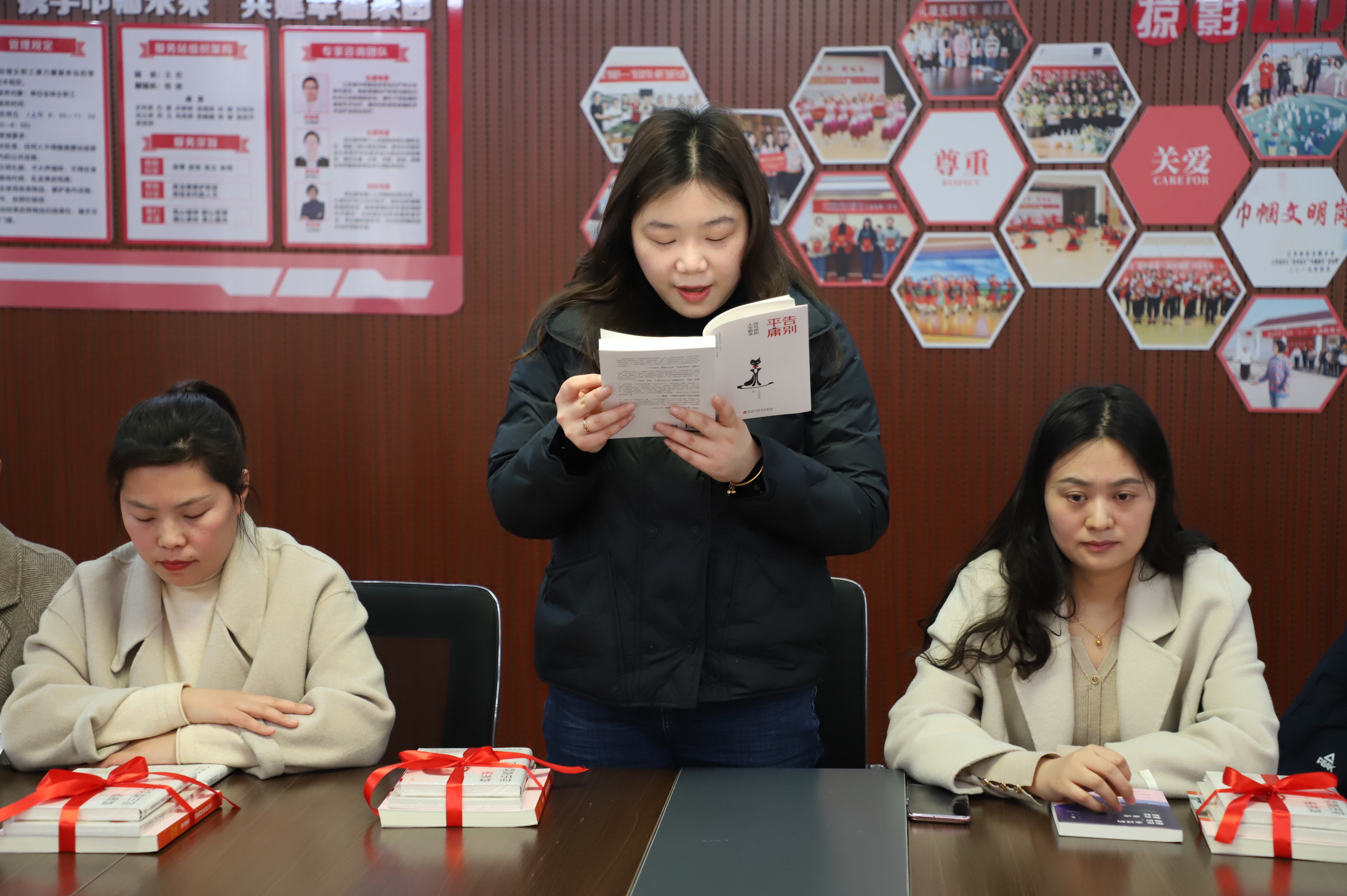 來(lái)吧,來(lái)吧,相約三八。相約在春光明媚的三月里,相約在閱讀分享的文韻里,相約在康乃馨服務(wù)站里......。3月7日下午14:00,公司工會(huì)開(kāi)展的“巾幗心向黨”主題讀書(shū)分享會(huì)在女職工朗朗的誦讀中拉開(kāi)帷幕。來(lái)自公司各條戰(zhàn)線上的女職工們從教育、文學(xué)、哲學(xué)、健康等方面內(nèi)容,進(jìn)一步抒發(fā)家國(guó)情懷,弘揚(yáng)時(shí)代精神,給我們帶來(lái)了一場(chǎng)聽(tīng)覺(jué)盛宴。塑造知識(shí)型的“她”,并為女職工贈(zèng)送有關(guān)紅色主題、女性勵(lì)志等方面的書(shū)籍,在廣大婦女中營(yíng)造“好讀書(shū)、讀好書(shū)、讀書(shū)好”的良好氛圍,促進(jìn)家庭文明、社會(huì)和諧。