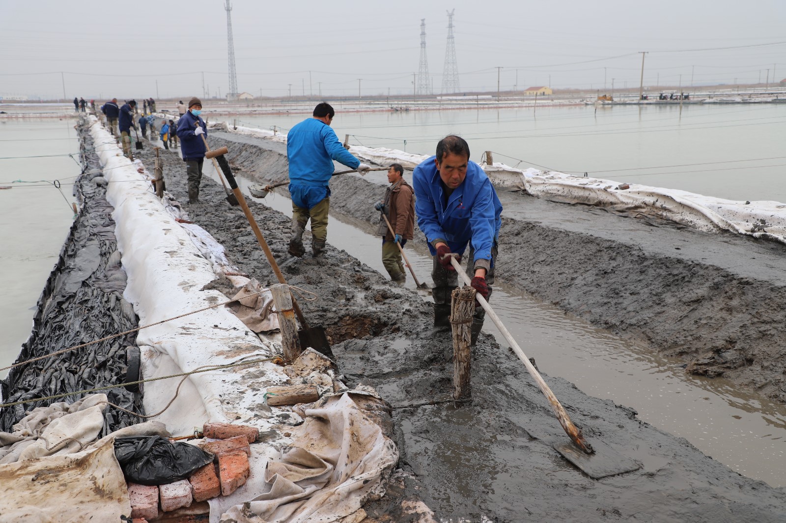 在新河制鹽分公司鹽田地頭的冬準(zhǔn)會(huì)戰(zhàn)現(xiàn)場(chǎng),人頭攢動(dòng),工人們正動(dòng)作嫻熟的進(jìn)行澆水、翻泥、踩實(shí)、做埝、整平……,鹽工們?nèi)?zhēng)先進(jìn)位,手腳不停的揮鍬挖泥,呈現(xiàn)出你追我趕、比肩發(fā)力的勞動(dòng)場(chǎng)景。一條條溝道改造、格堰修整等亮化灘場(chǎng)文明建設(shè)煥然一新,一幅幅“人勤春早”的美麗畫卷徐徐展開。