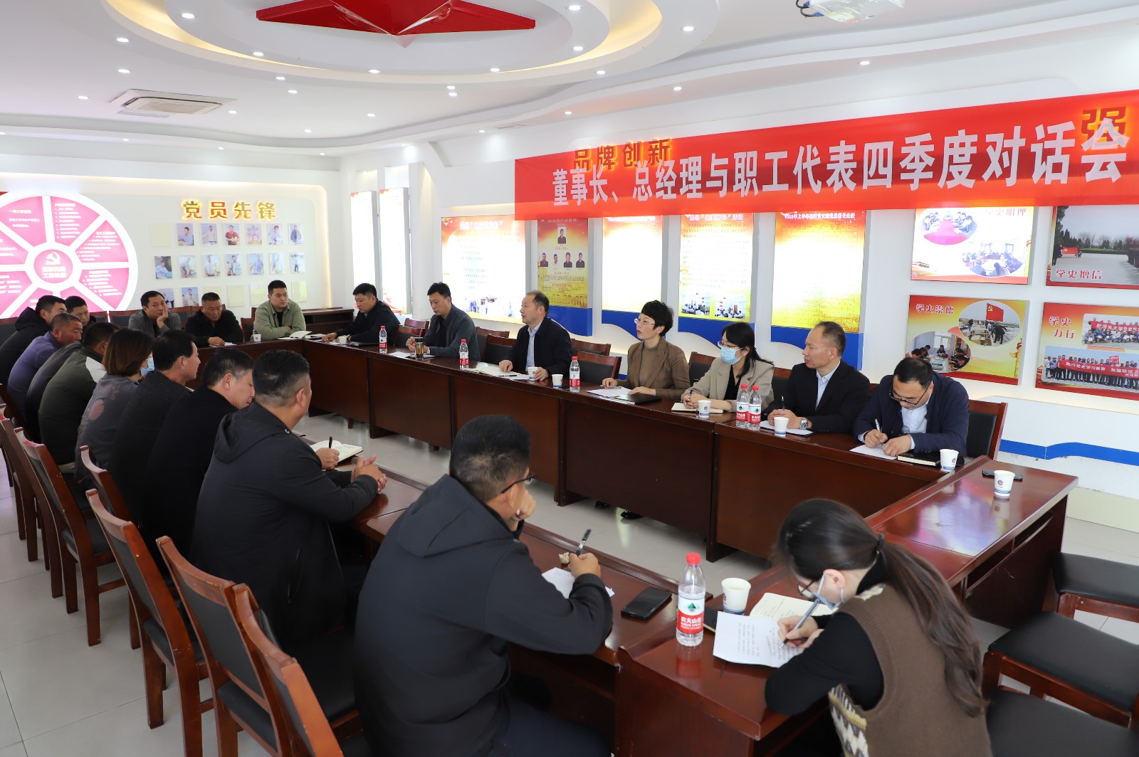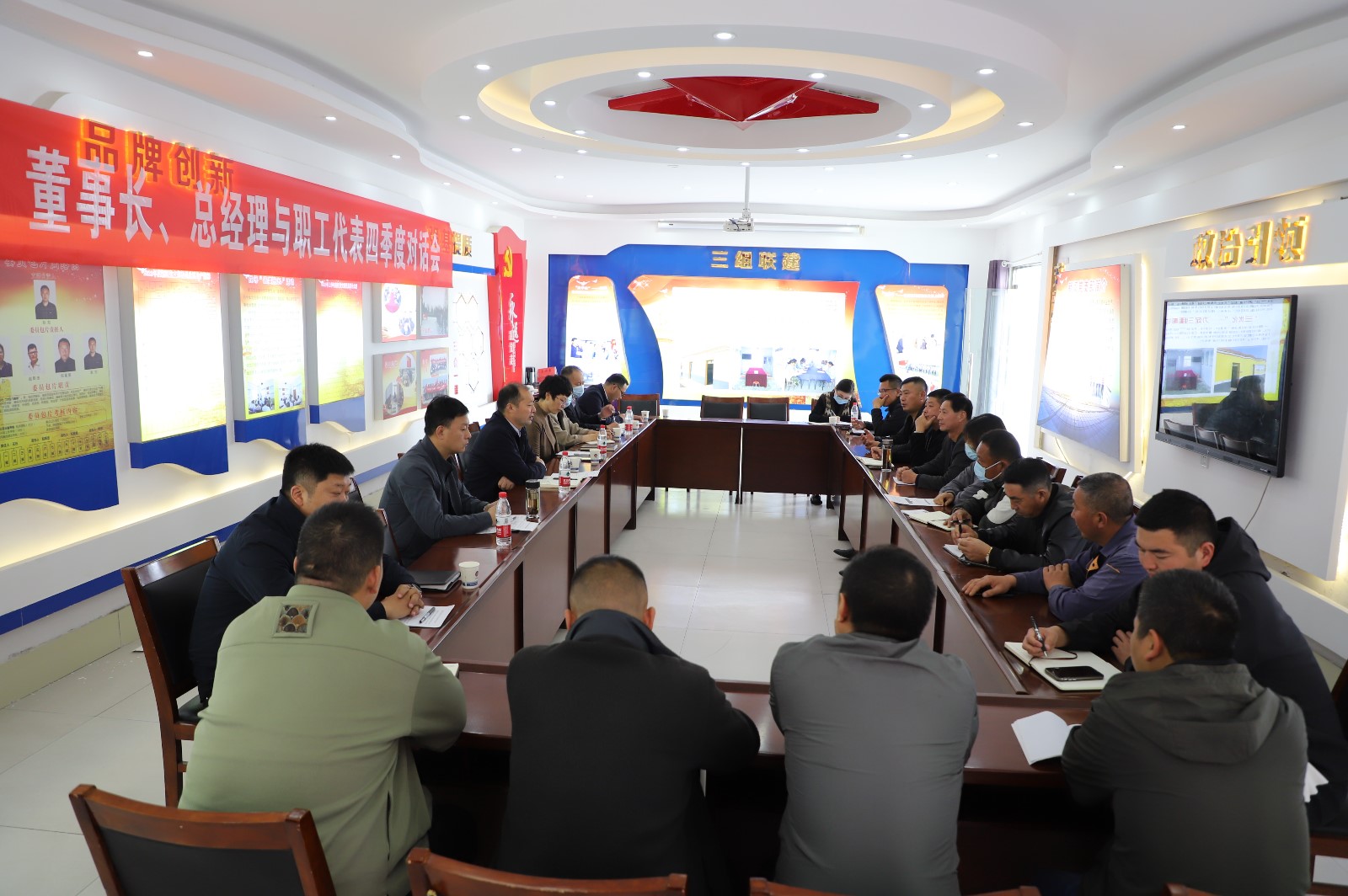 2022年11月3日下午,職工代表與公司董事長、總經(jīng)理齊聚一堂,就生產(chǎn)生活中遇到的問題提建議、獻(xiàn)良策。