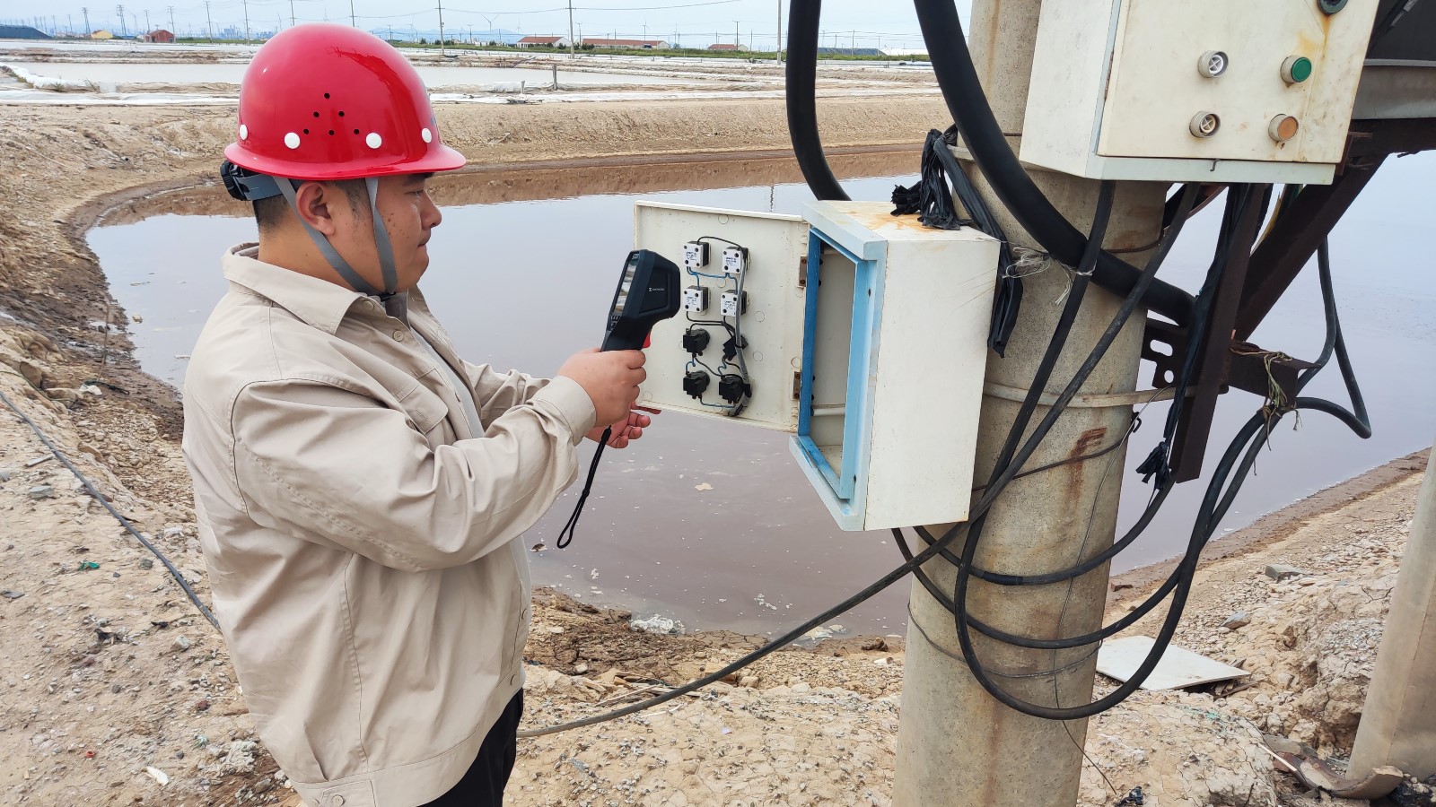 9月27日,“戰(zhàn)斗”正式打響,投資公司聯(lián)合供電公司開展日曬制鹽用電線路專項檢查,本次檢查組成員主要由投資公司和供電公司領導牽頭,安全部門和電力專家組配合組成;并分成兩組對已“服役”13年的日曬制鹽線路進行全面體檢,針對檢查中存在的用電設施隱患及用電安全問題,予以記錄并及時落實整改;確保電路設備安全穩(wěn)定的運行。