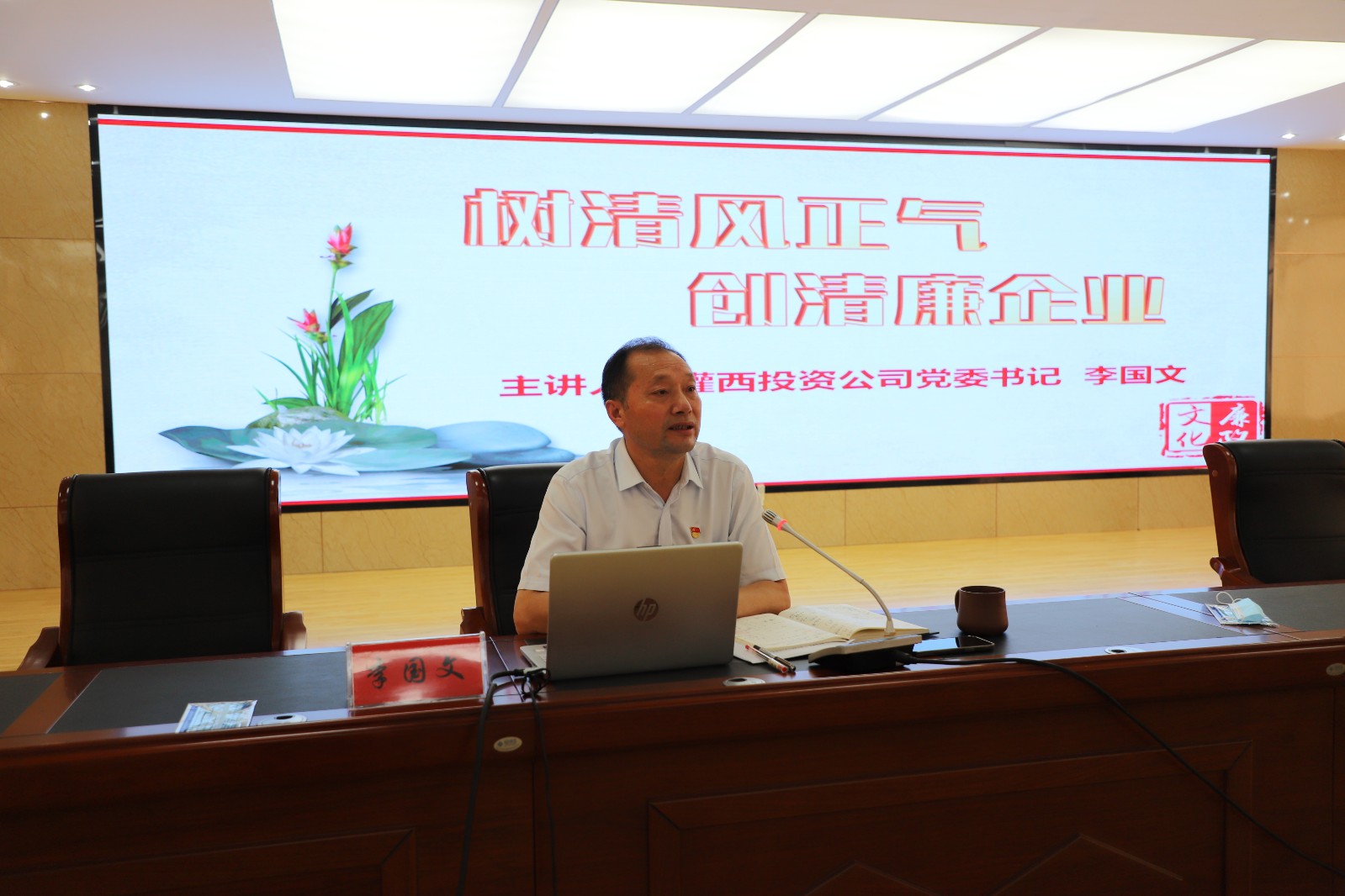 會議最后,李國文以“樹清風(fēng)正氣 創(chuàng)清廉企業(yè)”為主題,結(jié)合公司工作實際,為大家上了一堂生動的廉政黨課。以正反面典型故事案例,教育警醒黨員干部自覺帶頭對照這“兩面鏡子”,要求全體黨員要以案為鑒,打牢思想根基,杜絕私欲膨脹,保持警鐘長鳴;要堅守“四心”,不忘初心,珍惜自身前程;守住清心,不攀比;修好內(nèi)心,自覺加強黨性鍛煉和黨性修養(yǎng);常懷律己之心,常修為官之德。警告大家,不觸底線、不越紅線。守住政治底線、夯實合規(guī)底線、筑牢廉政防線助推企業(yè)高質(zhì)量發(fā)展的重要性。(西宣)