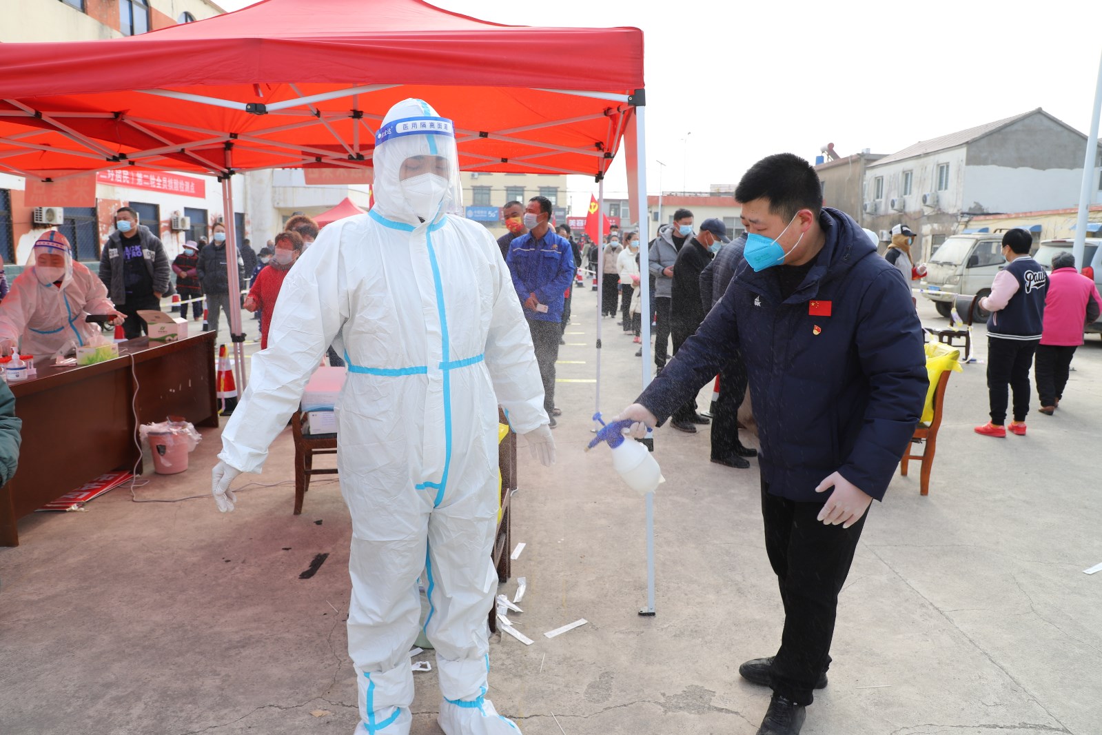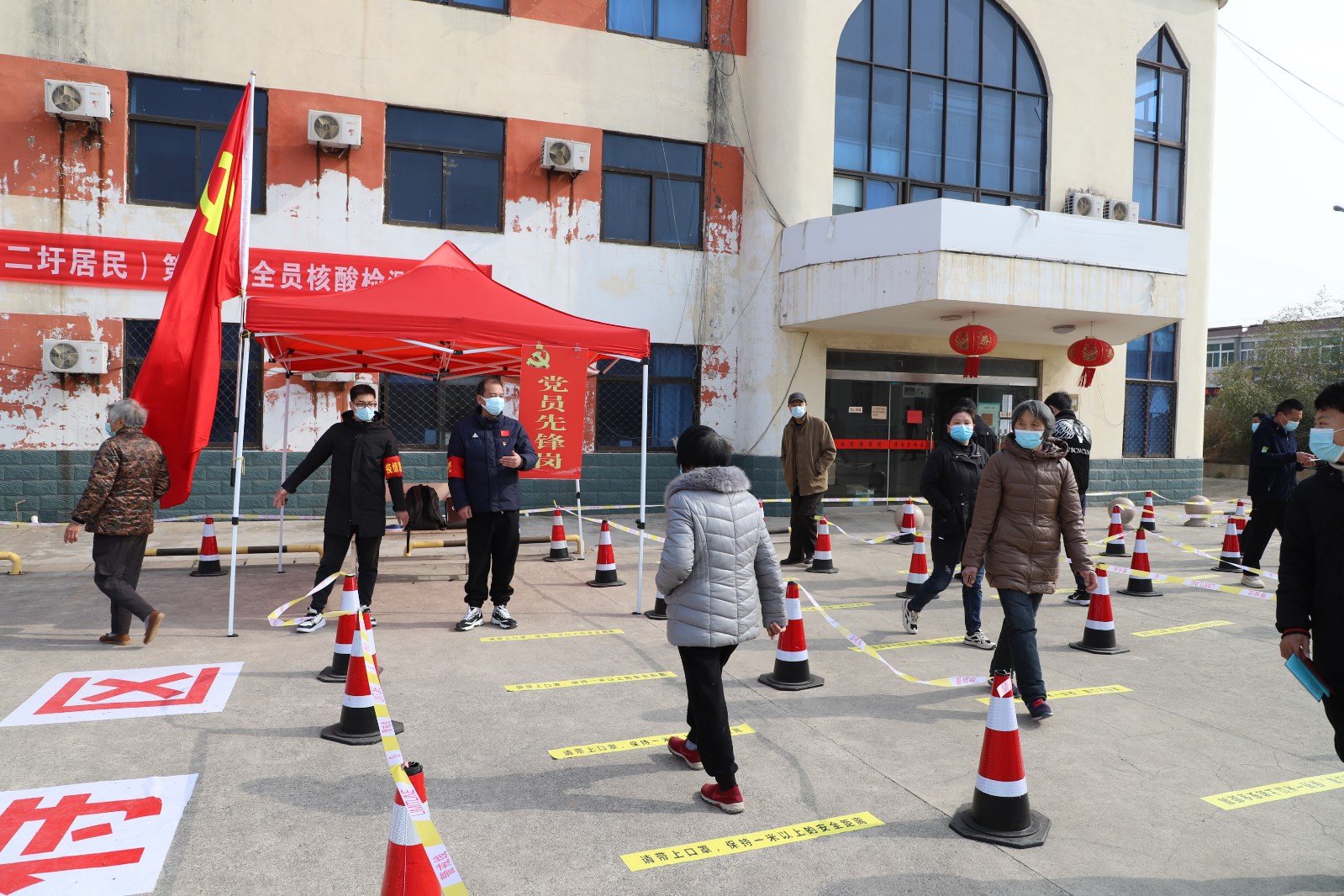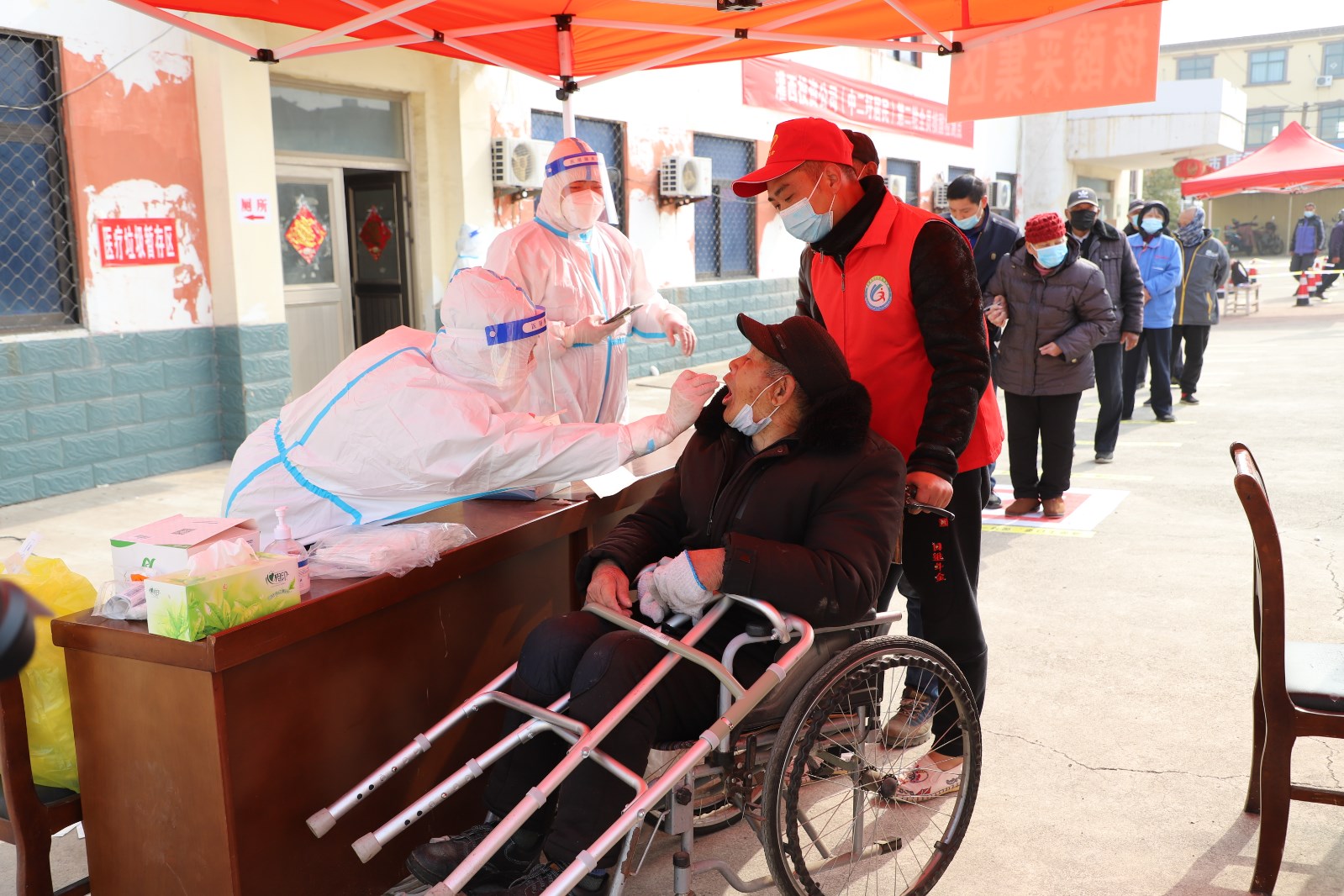 檢測現(xiàn)場,各單位組織黨員先鋒隊成員、社區(qū)志愿者不斷優(yōu)化現(xiàn)場服務(wù),提醒居民群眾提前出示“蘇康碼”,有序排隊,讓等待時間更短一點(diǎn)、人員距離更遠(yuǎn)一點(diǎn)、個人防護(hù)更好一點(diǎn)。另一方面,灌西檢測點(diǎn)開設(shè)老者、孕婦、兒童綠色通道,減少這部分人群排隊等候的時間,同時安排志愿者攙扶、幫助不會使用智能手機(jī)的老年人,確保他們順利完成核酸檢測。