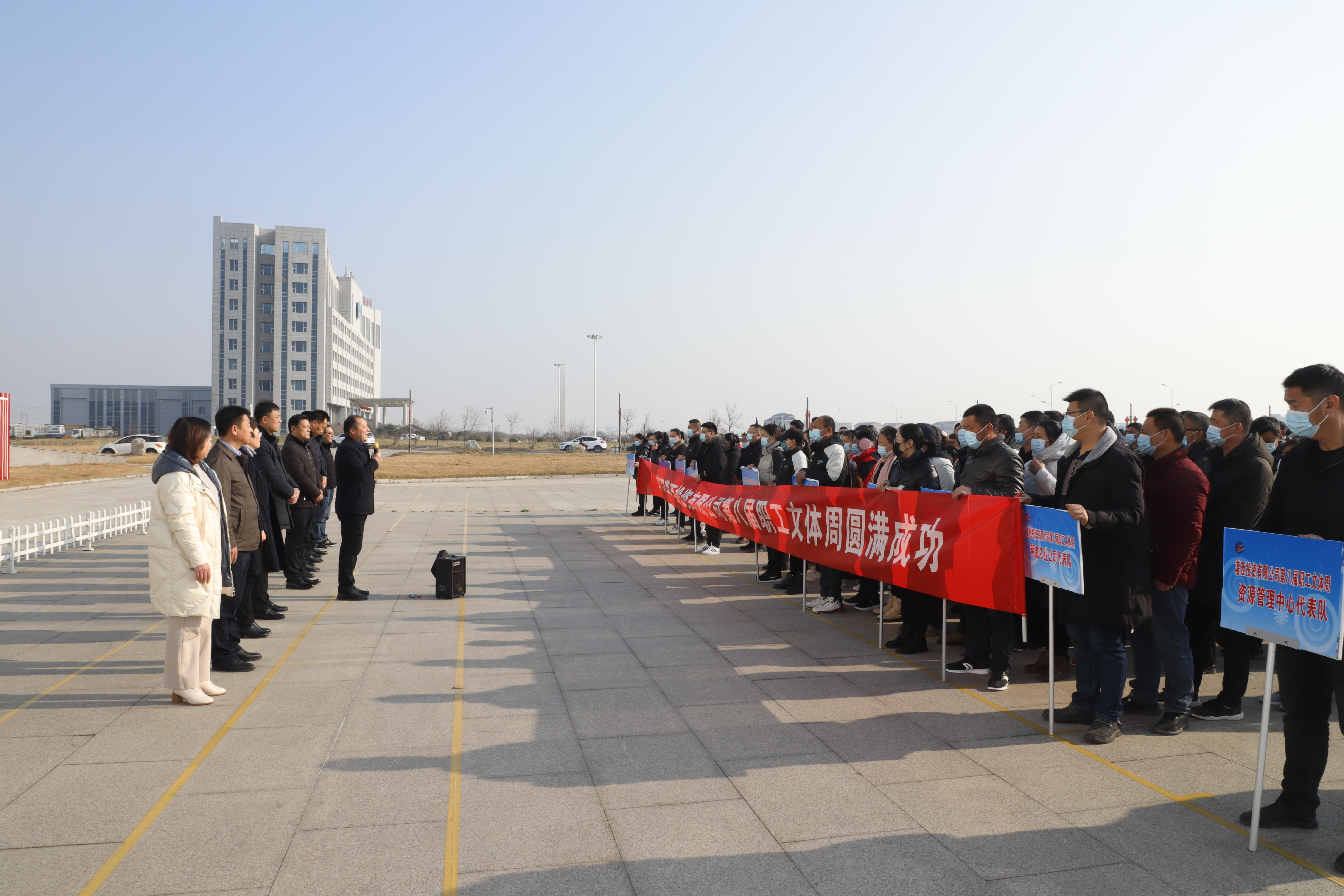 12月22日,灌西投資公司在機(jī)關(guān)大樓前舉辦迎新年“第八屆職工文體周”活動。來自公司各條戰(zhàn)線的近500余名職工將參加本次文體周活動。公司黨委書記、董事長、總經(jīng)理李國文致開幕詞,黨委副書記、工會主席王宏宣布本次職工文體周開幕。