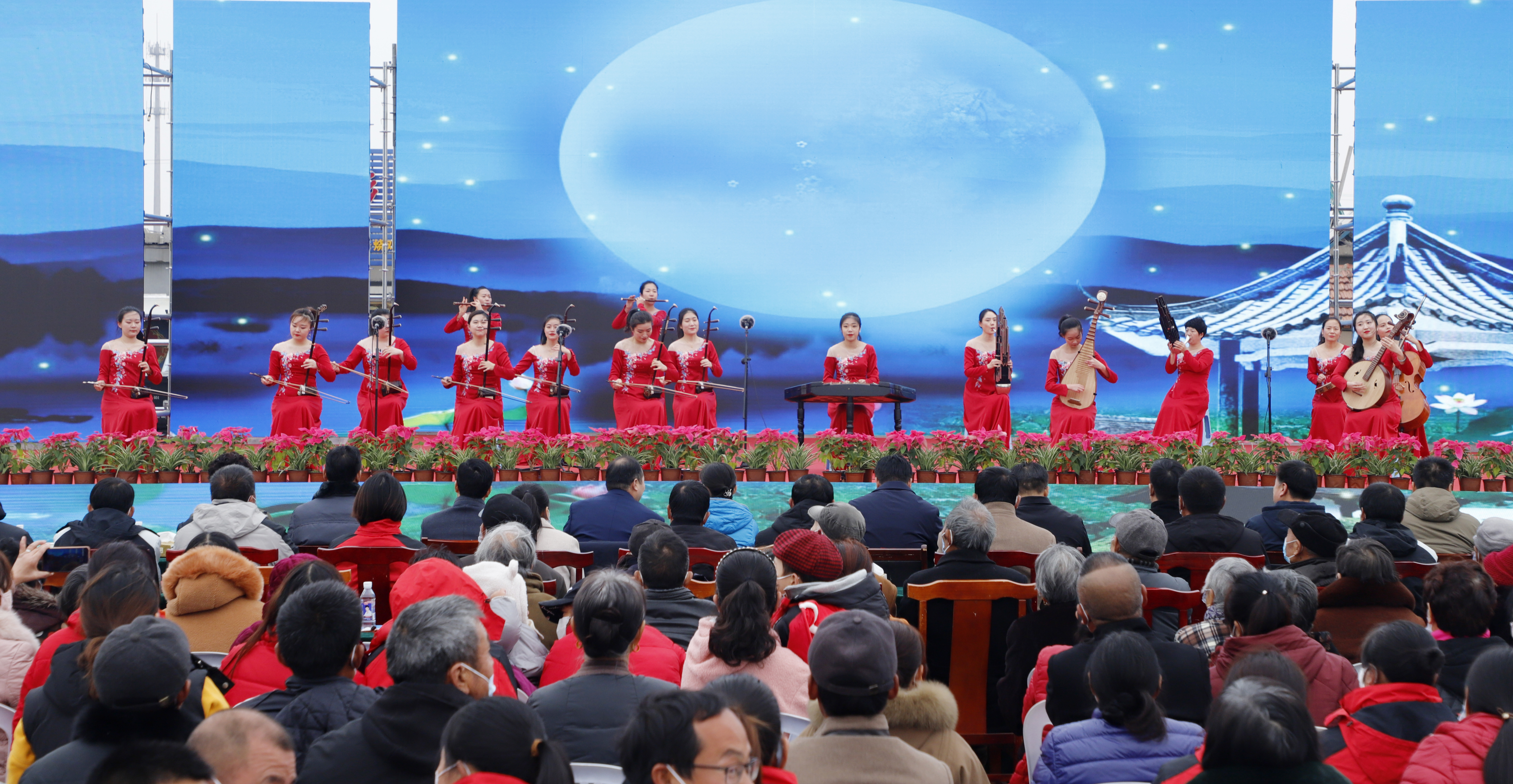 演出在精彩的合奏《水鄉(xiāng)情韻花好月圓》中拉開序幕,現(xiàn)場洋溢著歡樂的氣氛。健身操《向快樂出發(fā)》節(jié)奏歡快,動作利落灑脫,盡情釋放青春活力,獨舞《浣》旋律優(yōu)美,衣袖舞動,舞出溫婉柔美之態(tài)?,F(xiàn)代與古典、活力與韻味的巧妙結(jié)合,為現(xiàn)場觀眾帶來了一場視覺上的盛宴。男聲獨唱《我是真英雄》、二胡獨奏《太極琴俠》、舞蹈《我和我的祖國》,以及民樂合奏《樂見西游》,悅耳的人聲與悠遠(yuǎn)的琴聲合鳴共振,營造出悠揚(yáng)美妙的音樂劇場。相聲《歡聲笑語》和淮海戲《借靴》語言幽默風(fēng)趣,劇情跌宕起伏,演員與臺下觀眾時不時的互動更是掀起了一波又一波的高潮。最終,精彩紛呈的演出在女聲獨唱《錦繡前程》中落下帷幕。