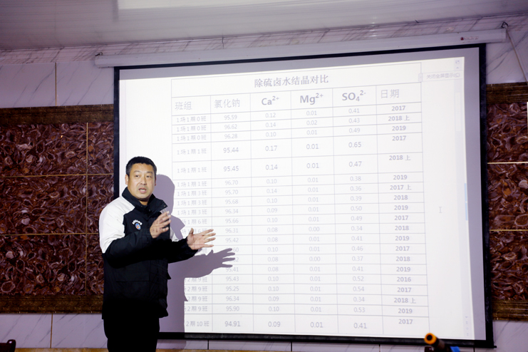 為進一步提高日曬制鹽公司原鹽生產質量,通過一年來的新鹵與老鹵長鹽數(shù)據(jù)對比,使用全新鹵水長鹽氯化鈉含量明顯提高,硫酸根離子、鈣離子也有所下降,使得分區(qū)曬鹽提高鹽質提供了數(shù)據(jù)依據(jù)。此次培訓,深入講解了分區(qū)供鹵、老鹵區(qū)分、混合鹵水的分池結晶實施辦法以及在雨天收集淋板水,提高利用窮制鹵的途徑。培訓中,圍繞礦鹵日曬制鹽技術及除硫工藝兩個方面,重點對鹽質的管控、除硫的目的、意義、工藝流程等方面內容進行了講解,使參訓人員特別是一線班組長對鹽質和除硫工作的重要性有了更深刻的認識,同時也為鹽質鹽量的提升奠定了理論基礎。(張明建)