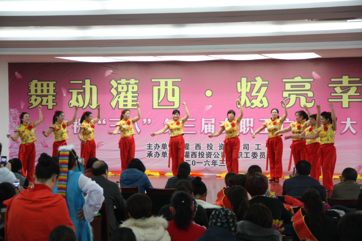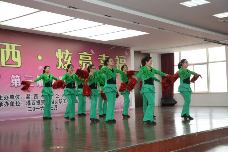 為了迎接第106個(gè)國(guó)際“三八”婦女節(jié)的到來(lái),3月8日上午,灌西投資公司舉辦了“舞動(dòng)灌西·炫亮幸福”第三屆女職工廣場(chǎng)舞大賽。這次比賽邀請(qǐng)了尚慶葉等七名集團(tuán)公司各單位原女工主任擔(dān)任評(píng)委,做到了公平、公正,比賽成績(jī)充分顯示了各自的真實(shí)水平。來(lái)自全公司各單位共11支參賽隊(duì)伍給大家來(lái)了精彩的表演,觀看比賽的職工群眾200余人。