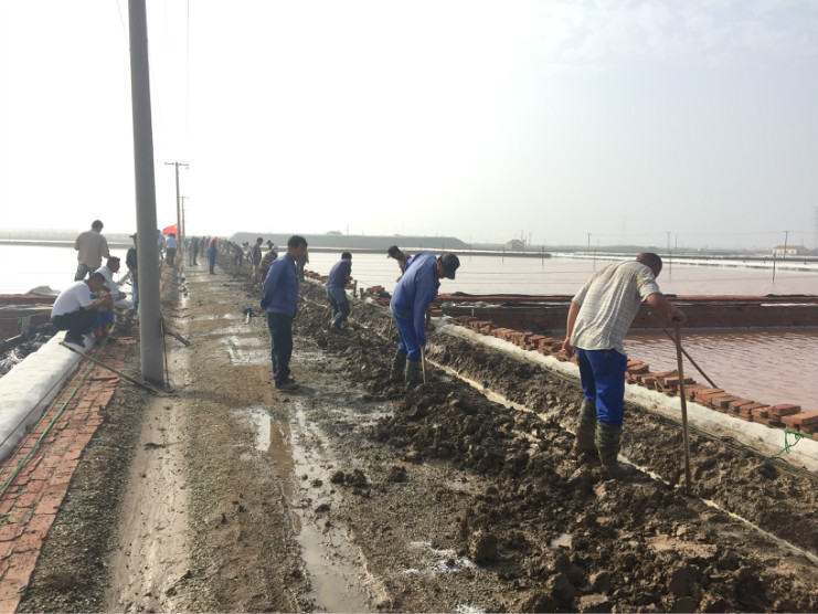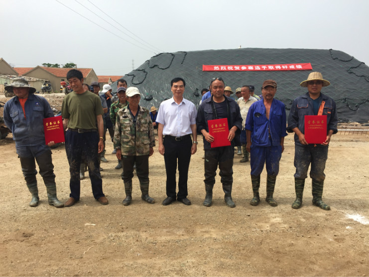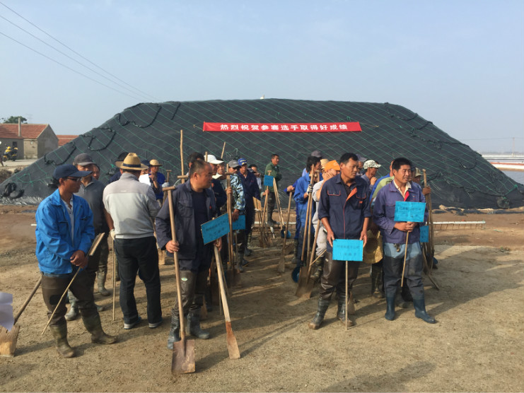 比賽開始前,生產服務公司經理王緒前首先就天溝建設要求、評分標準等事項進行了現(xiàn)場說明。7點20分,隨著裁判員的一聲令下,比賽正式開始。參賽選手們按照賽前抓鬮序號,迅速投入到比賽中。賽場上,每一組選手都分工明確,澆水、翻泥、踩實、做埝、整平一氣呵成,大家都表現(xiàn)的極為熟練,充分展示了參賽選手扎實的基本功。比賽中,三位裁判在比賽場地來回巡查,認真記錄每一組參賽選手的勞動過程,力求做到公平、公正。9點20分,隨著最后一組選手的工作完成,比賽正式結束。隨即,三位裁判又根據比賽過程中的記錄情況結合最終工程質量對每一參賽小組進行綜合評分。最終,來自埒南制鹽分公司的章保衛(wèi)、高明成榮獲比賽第一名;江海兵、張春連以及尹步松、汪禮兵兩組選手榮獲第二名;新河制鹽分公司朱明、戴繼明,郁雷敏、李正軍,楊春旭、史春海三組選手榮獲第三名。