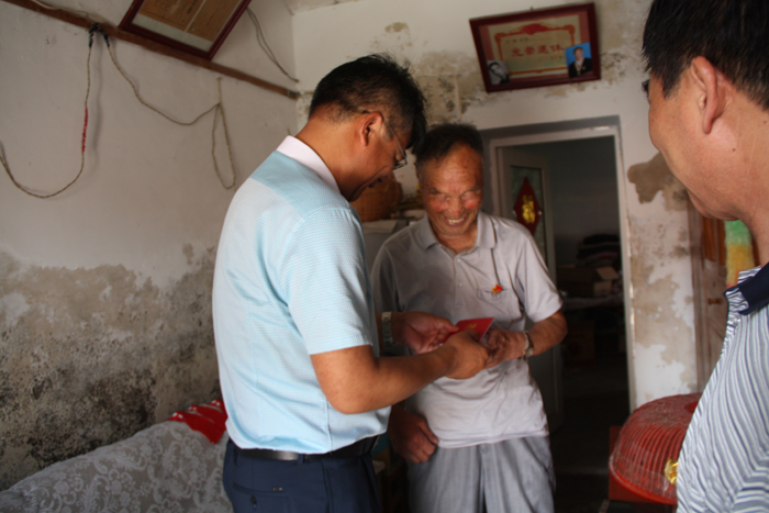 在參加過(guò)抗日戰(zhàn)爭(zhēng)的老黨員方健家中,王德志書記與方老親切交談,一起重溫他在革命戰(zhàn)爭(zhēng)年代的光輝事跡,對(duì)老黨員們?cè)诟锩鼞?zhàn)爭(zhēng)年代、社會(huì)主義建設(shè)時(shí)期,為國(guó)家的解放事業(yè)和現(xiàn)代化建設(shè)事業(yè)作出的不可磨滅的貢獻(xiàn)表示衷心的感謝。方老雖然已經(jīng)八十多歲的高齡,身體很健康,精神矍鑠,十分健談,他表示,感謝黨組織關(guān)心,自己年紀(jì)大了,也不能為黨為企業(yè)做什么貢獻(xiàn)了,但仍時(shí)刻關(guān)心國(guó)家大事,關(guān)注公司的發(fā)展,謹(jǐn)守黨員本分,積極支持公司黨委工作,堅(jiān)決不給組織添麻煩。王德志書記一行還分別走訪慰問(wèn)了老黨員王連山、卜玉喜和困難黨員許佃來(lái)等,王德志書記指出,這些老黨員是我們黨組織的“寶貝”,他們有著強(qiáng)烈的黨員意識(shí),對(duì)我們黨有著堅(jiān)定的信仰,值得每一個(gè)黨員,尤其是年輕黨員學(xué)習(xí)。他強(qiáng)調(diào),關(guān)愛(ài)老黨員和生活困難黨員是我們黨的優(yōu)良傳統(tǒng),也是我們基層黨組織的重要職責(zé)。我們要通過(guò)與老黨員們的溝通,了解他們的困難,關(guān)心他們的思想和生活,使他們生活上得到幫扶、精神上得到激勵(lì),切身感受到了黨組織的關(guān)懷和溫暖。(季興勝)