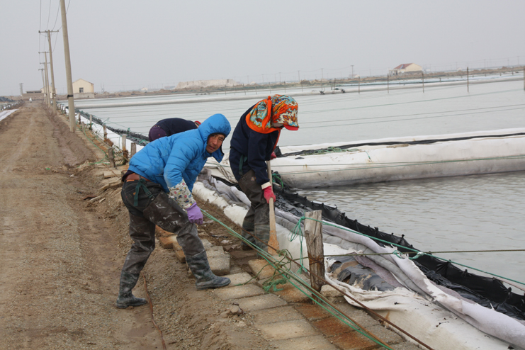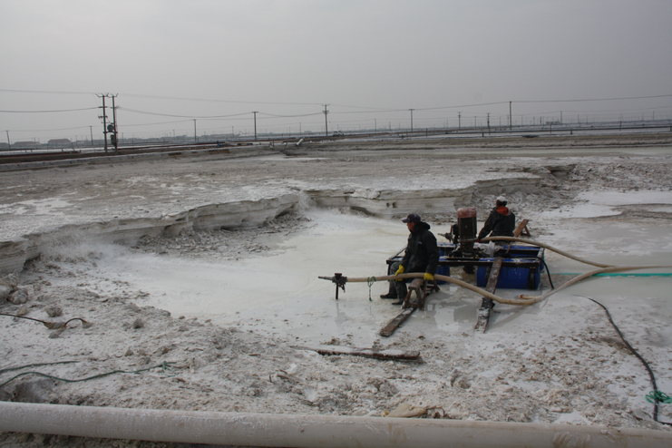2月6日上午,在新河制鹽分公司的九班,我們看到工人們正在下馬格內(nèi)和格,為盡快灌池生產(chǎn)打好基礎(chǔ),在十班,工人有的正在清除硫酸鈣,有的修整結(jié)晶池埝,而在八班的灘頭,一臺挖掘機(jī)正在鹽廩上裝鹽銷售,日曬制鹽公司廣大員工掀起春季生產(chǎn)熱潮,處處都是忙碌景象。據(jù)了解,隨著市場回暖,日曬制鹽公司的原鹽銷售較前兩年同期無論是在數(shù)量上,還是在價格上都有所增長。為了抓住這一難得的銷售機(jī)遇,不斷擴(kuò)大市場占有率,公司計劃組織兩個制鹽分公司在近期開展扒鹽工作,以確保原鹽銷售工作不中斷。為此,各生產(chǎn)單位緊緊圍繞這一工作重心,在抓好日常生產(chǎn)的同時,精心做好扒鹽前的各項準(zhǔn)備工作,努力確保扒鹽工作正常有序開展。與此同時,部分尚不具備扒鹽條件的班組則抓緊時間做好除硫池清理、撤格池板的整平以及土工布更換等工作,為春季生產(chǎn)做好各項準(zhǔn)備工作。(封楊)