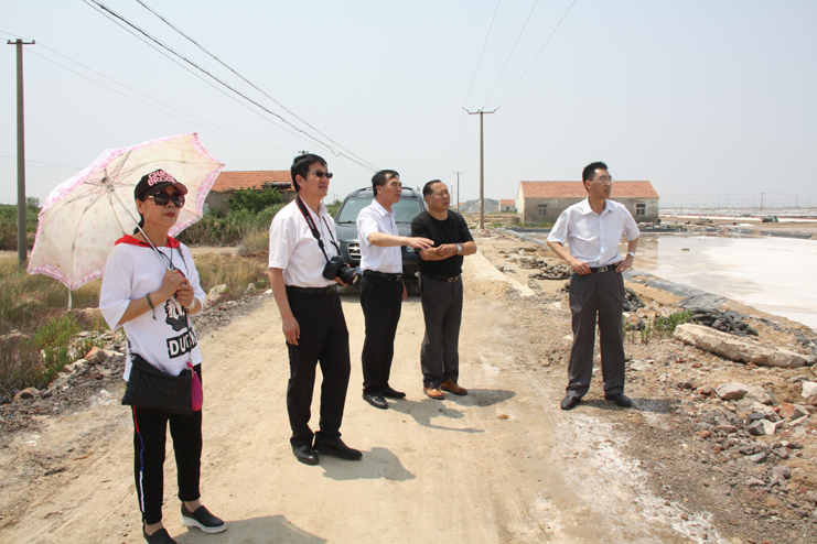 一行人先后到原民國(guó)時(shí)期公濟(jì)制鹽公司的辦公署遺址、早期產(chǎn)鹽平面灘和日曬制鹽公司的扒鹽現(xiàn)場(chǎng)參觀(guān)采風(fēng)。具有百年歷史的原公濟(jì)制鹽公司辦公署是灌西鹽場(chǎng)地區(qū)現(xiàn)存最古老的建筑物,也是整個(gè)淮鹽地區(qū)僅有的遺跡,隨著歷史的變遷,房屋雖幾經(jīng)改建,破損嚴(yán)重,但主體結(jié)構(gòu)仍然保留了下來(lái),是重要的淮鹽文化物證。位于鈣液復(fù)曬區(qū)的早期產(chǎn)鹽平面灘,是前不久為央視攝制組拍攝淮鹽發(fā)展歷史而改造的制鹽平面灘,復(fù)制了過(guò)去的制鹽工藝及生產(chǎn)過(guò)程,在平面灘上,大家拿起收鹽刮板,挑起鹽筐,手推小鹽車(chē),一一體驗(yàn)一下過(guò)去鹽工們的勞動(dòng)方式。在新河制鹽分公司十班的扒鹽現(xiàn)場(chǎng),機(jī)聲隆隆,潔白鹽廩不斷壯大,這是日曬制鹽公司上半年最后一臺(tái)正在扒鹽的機(jī)組,其余的七臺(tái)扒鹽機(jī)組已經(jīng)先后完成的扒鹽任務(wù),正在進(jìn)行最后三塊格的扒鹽工作。大家一邊參觀(guān),一邊拍照,通過(guò)古今不同時(shí)期產(chǎn)鹽方式對(duì)比,對(duì)過(guò)去鹽工們的艱辛勞動(dòng)和現(xiàn)代制鹽技術(shù)的革新,生產(chǎn)力的提高都有了直接的感受,個(gè)個(gè)感觸頗深。(季興勝)