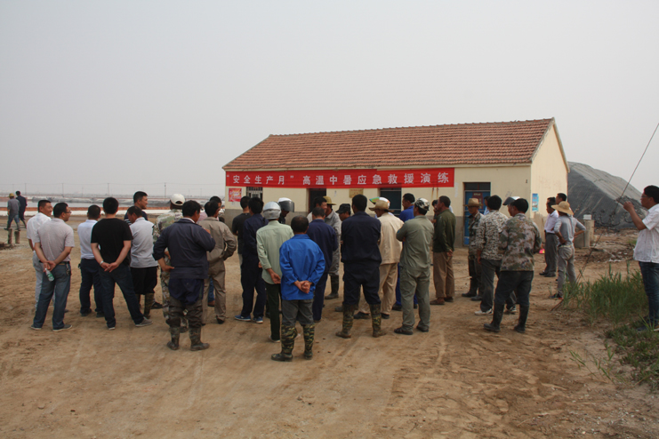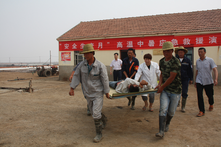 為了加強公司全員的安全預防意識,增強應對緊急事件的自我保護和防衛(wèi)能力, 6月29日上午,灌西投資公司在新河制鹽分公司九班聯(lián)合舉行“高溫中暑應急救援演練”活動,公司副總經(jīng)理古浩光、各單位分管安全領(lǐng)導、日曬制鹽一線班組長參加觀摩。