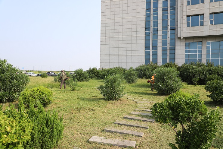 連日來,在臨港產業(yè)區(qū)辦公樓前,我們看到幾名南翼綠化公司的工人正在草坪上揮動割草機,忙碌的進行著除草作業(yè)。據了解,為了避開高溫時段,他們早上6點就開始工作,許多綠化工人都是五點多在家匆忙吃完早飯就趕往工作現場,有的甚至空腹上陣。工作現場,在經過一個夏天的生長,不少地方的雜草都近半米高,草叢內還有不少的碎石子等雜物,為了做好自身防護,工人們穿著厚厚的衣褲,戴著口罩、頭盔,肩扛除草機,一工作就是一上午。雖然近階段氣溫逐漸下降,但近30°的氣溫還是讓工人們吃不消。為了盡快完成工作目標,每一名工人都在咬牙堅持,默默地為更多的人營造一個優(yōu)美、整潔的環(huán)境而做出自己的貢獻。(封楊)