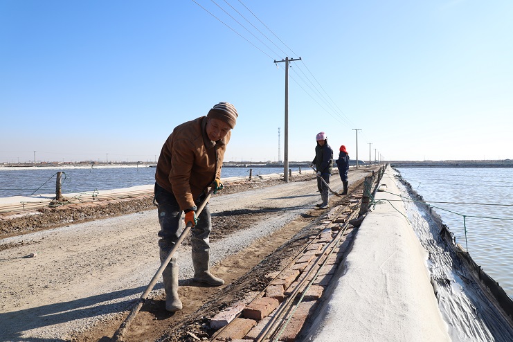 日前,在日曬制鹽新河分公司生產(chǎn)現(xiàn)場(chǎng),我們看到工人們正在為冬準(zhǔn)工作的開(kāi)展積極的忙碌著,大家或是撈溝做堰,或是在清理硫酸鈣,或是整平池道,到處是一派忙碌的景象。據(jù)了解,自11月30日冬準(zhǔn)動(dòng)員大會(huì)召開(kāi)過(guò)后,各制鹽分公司就迅速對(duì)會(huì)議精神進(jìn)行傳達(dá),并按照冬準(zhǔn)要求制定實(shí)施計(jì)劃。作為今冬明春的中心工作,冬準(zhǔn)工作關(guān)系到來(lái)年的原鹽生產(chǎn)。據(jù)介紹,下一步,日曬制鹽公司在加大日常生產(chǎn)管理工作的同時(shí),還將繼續(xù)抓好硫酸鈣清理,廩基加固,灘場(chǎng)文明等工作,確保冬準(zhǔn)工作按時(shí)完成,為明年各項(xiàng)生產(chǎn)經(jīng)營(yíng)工作的有序開(kāi)展奠定扎實(shí)的基礎(chǔ)。