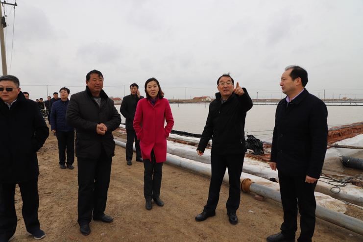 胡建明總經(jīng)理一行分別到原鈣液復(fù)曬區(qū)養(yǎng)殖池塘改造施工現(xiàn)場和新河制鹽分公司五班的扒鹽現(xiàn)場進(jìn)行實(shí)地調(diào)研,詳細(xì)了解工程的施工情況和日曬制鹽公司的生產(chǎn)情況。在原鈣液復(fù)曬區(qū),只見彩旗招展,幾臺挖掘機(jī)正在緊張施工之中,對灘地進(jìn)行養(yǎng)殖池塘改造,工程施工人員搶時間,抓進(jìn)度,爭取在養(yǎng)殖旺季來臨之時,完成工程施工投入養(yǎng)殖生產(chǎn)。日曬制鹽公司目前已經(jīng)出動五臺扒鹽機(jī)組投入到春季扒鹽工作中來,預(yù)計(jì)上半年將完成25萬噸的扒鹽任務(wù)。隨后在機(jī)關(guān)三樓會議室召開流動辦公會,投資公司董事長李國文對灌西投資公司和日曬制鹽公司的生產(chǎn)經(jīng)營情況進(jìn)行了匯報(bào)。他表示,2018年,灌西投資公司將積極迎接挑戰(zhàn),以“三超兩增一確保”為工作目標(biāo),產(chǎn)鹽58萬噸,實(shí)現(xiàn)綜合利潤翻一番工作任務(wù)而努力奮斗。同時也提出,公司當(dāng)前面臨原料礦鹵要漲價(jià)、原鹽一線員工年齡老化、職工小區(qū)房產(chǎn)證協(xié)調(diào)辦理等諸多發(fā)展難題,希望集團(tuán)公司領(lǐng)導(dǎo)給予高度重視。集團(tuán)公司領(lǐng)導(dǎo)相繼發(fā)言,現(xiàn)場辦公,針對各類問題分別進(jìn)行了研討,提出建議,解決問題。