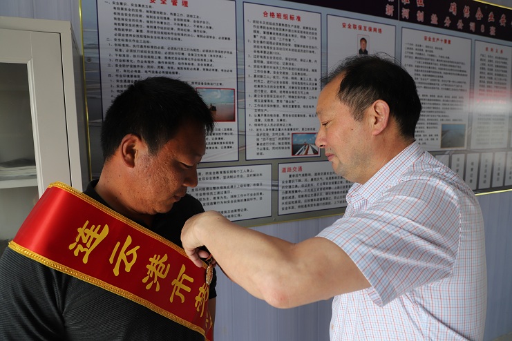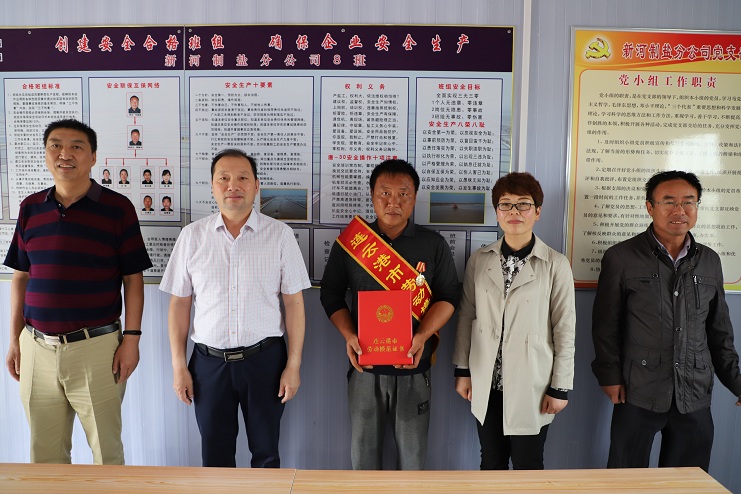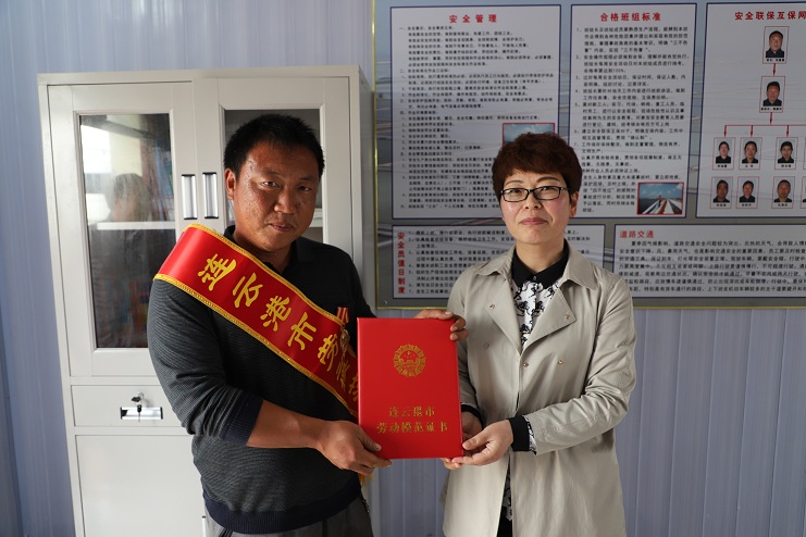 5月22日下午,公司董事長(zhǎng)、黨委書記李國(guó)文、紀(jì)委書記、工會(huì)主席王宏一行到新河制鹽分公司八班為獲得連云港市勞動(dòng)模范的祝星星綬帶佩章。