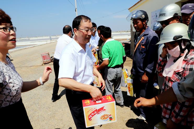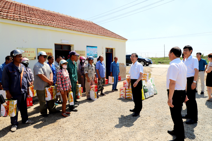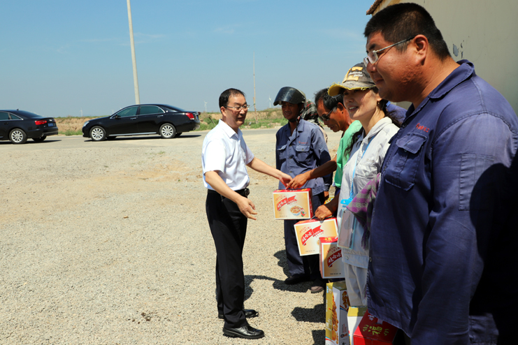 入伏以來(lái),持續(xù)高溫,為確保一線(xiàn)生產(chǎn)單位工作順利開(kāi)展,保證員工身體健康。7月18日上午,集團(tuán)公司總經(jīng)理胡建明、副總經(jīng)理張其海一行深入日曬制鹽公司走訪(fǎng)慰問(wèn)一線(xiàn)職工,把綠豆、飲料等慰問(wèn)品送到他們手中,在炎炎夏季,為一線(xiàn)職工送去集團(tuán)公司領(lǐng)導(dǎo)的深切關(guān)懷與陣陣清涼。