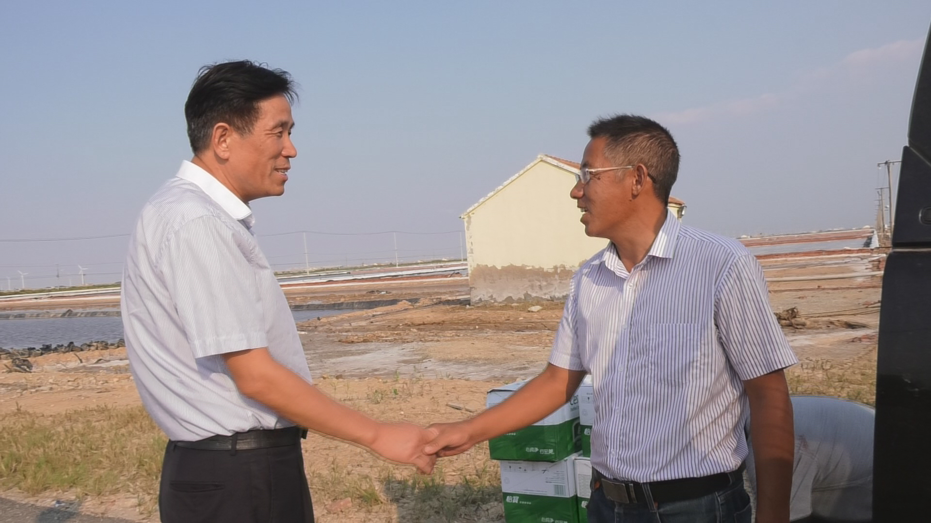 9月28日,西旺水產(chǎn)公司總經(jīng)理茆慶軍在投資公司副總經(jīng)理古浩光的陪同下,慰問日曬制鹽公司的扒鹽機(jī)組,向堅守扒鹽崗位辛勤工作的員工表示感謝。