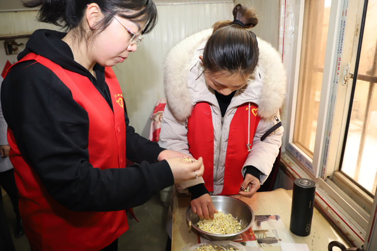 九點(diǎn)半,志愿者們來到中二圩社區(qū)新建點(diǎn)邱長(zhǎng)松家,邱老跟老伴正在揀黃豆芽,準(zhǔn)備中午的飯菜??吹街驹刚邆兊牡絹恚瑑晌焕先藷崆榈赜鲩T來,招呼我們進(jìn)屋,我們來到房間里,映入眼簾的是一張老式的八仙桌擺在室內(nèi)的一角,整個(gè)房間里擺設(shè)很簡(jiǎn)單,可以看出來老人的艱苦樸素、勤儉節(jié)約的生活作風(fēng)。志愿者和老兩口拉起家常,詢問身體狀況和生活困難,并幫著大爺大媽揀黃豆芽。“我身體沒有什么大毛病,就是年歲大了,行動(dòng)不方便,小孩都不在身邊,要感謝志愿者來看我們老兩口”,邱大爺誠懇的話語表達(dá)著心里的感謝。醫(yī)療志愿者為邱大爺跟老伴做了身體的簡(jiǎn)單檢查,這時(shí)從外面走來幾位剛買完菜路過的大嬸、大媽們,她們聽說有醫(yī)療志愿者在邱大爺家,也紛紛過來讓志愿者醫(yī)療隊(duì)的醫(yī)生查查身體,“我家就住在隔壁,聽說有志愿者醫(yī)療隊(duì)來,我就想過來讓醫(yī)生幫我量量血壓,最近血壓或高或低的”,“剛在街上買菜回來,路過這,看都穿灌西志愿者紅馬甲,我就進(jìn)來看看的,正好醫(yī)療隊(duì)在,我也給醫(yī)生查查看看。”大嬸、大媽們熱情的表達(dá)。