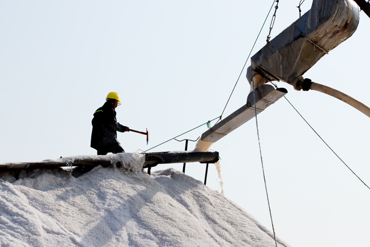 “轟隆隆——”的鹽泵轟鳴聲伴隨著扒鹽機(jī)馬達(dá)的嗡嗡聲,3月25日下午,日曬制鹽埒南制鹽分公司13班率先打響“春扒”戰(zhàn)役,萬(wàn)畝鹽灘一片繁忙景象。