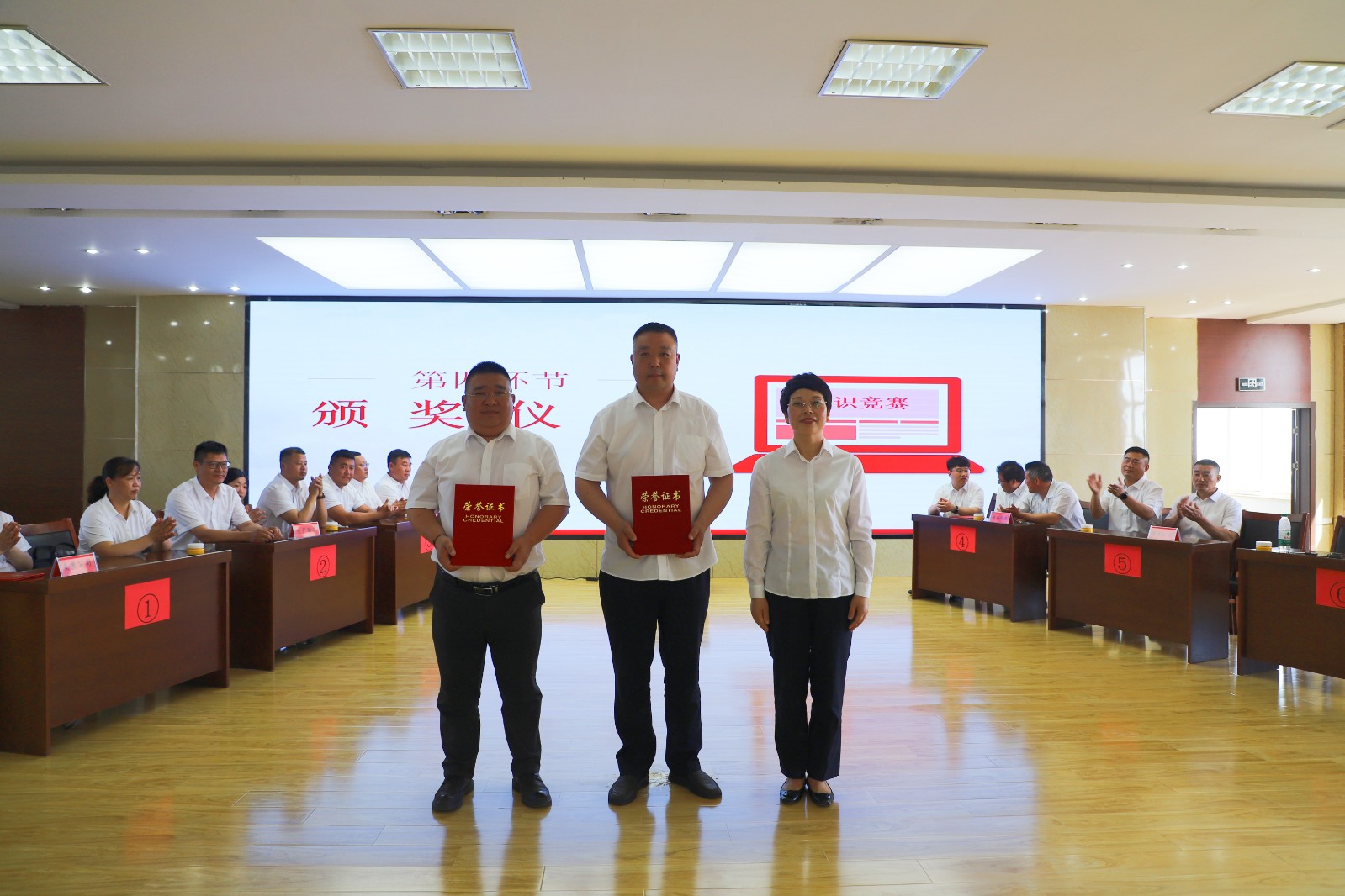 決賽過(guò)程緊張而激烈,選手們表現(xiàn)出高度的參與熱情與流暢的應(yīng)答能力。競(jìng)賽形式包括必答題、搶答題、單位負(fù)責(zé)人答題及觀眾互動(dòng)題等,分?jǐn)?shù)隨著比賽的推進(jìn)而逐漸攀升。在搶答環(huán)節(jié)中,部分代表隊(duì)因搶答違規(guī)被扣分,而部分隊(duì)伍則采取穩(wěn)健策略,雖搶答次數(shù)不多,但得分依然可觀。值得一提的是,各參賽單位負(fù)責(zé)人現(xiàn)場(chǎng)參加答題比賽,所得分?jǐn)?shù)算入?yún)①愱?duì)伍的總得分。