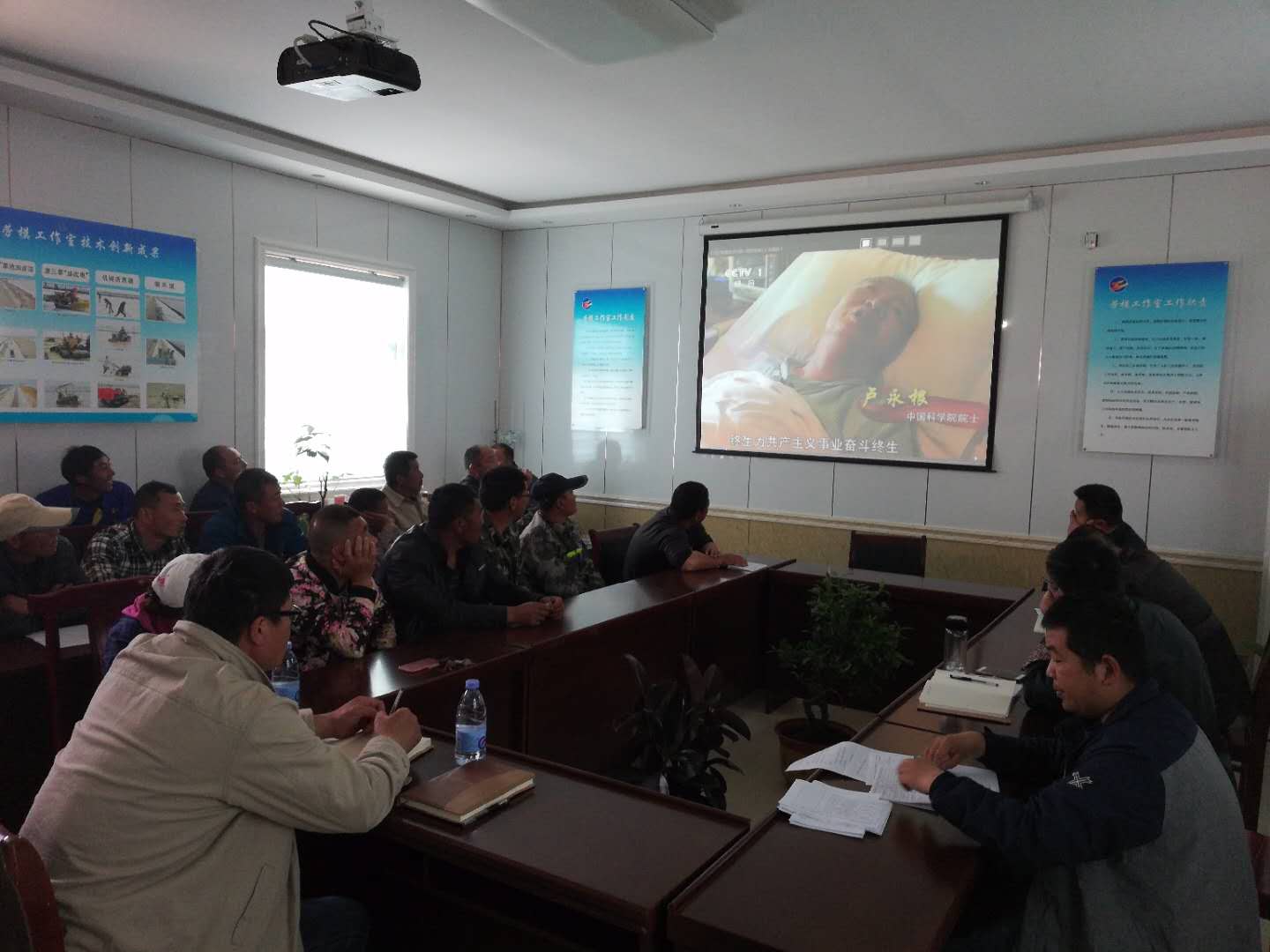 4月25日下午,新河黨支部召集全體黨員在勞?;顒?dòng)室觀看《感動(dòng)中國(guó)2017年度人物》系列短片。