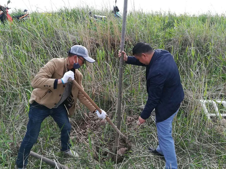 大家下午一點(diǎn)三十出發(fā),每人帶上鐵锨或者鐵楸,前往目的地。全體員工都相互協(xié)作,四人一組搬運(yùn)樹(shù)苗,填土栽植,經(jīng)過(guò)兩天的勞動(dòng)完成了二百三十三畝土地共五百四十棵樹(shù)苗的栽植任務(wù)。