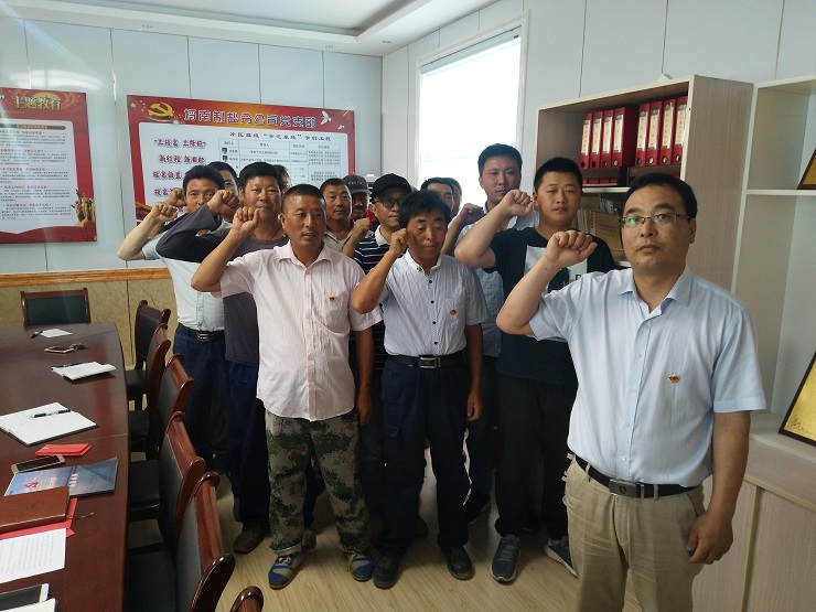會議由莊忠明書記主持,首先對新加入的古青、曹軍華兩名同志的接收投票,在全體正式黨員進行無記名投票表決后,兩名同志全票通過了投票表決;會議上莊忠明書記代表埒南黨支部對全體黨員進行了組織架構通報,并帶領大家重溫了入黨誓詞;楊守斌經(jīng)理以“不忘初心、牢記使命”為主題為大家上了一堂黨課--爭做新時代合格黨員;作為慶祝“七一”的一項活動,大家?guī)蠒皫淼蔫F锨等工具,到工區(qū)旁的馬路上對臟亂的道路進行義務勞動。