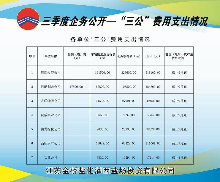 三季度期間,我公司銷售原鹽共計154539.6噸,資金回籠30448983.8元。