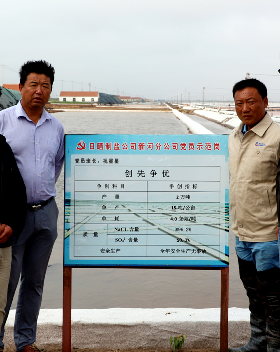 2016 年底,由于祝星星的出色表現(xiàn),在全公司31個(gè)班組長中,他被公司選中擔(dān)任原料鹽基地的班長。面對新的班組、新的戰(zhàn)場,他帶領(lǐng)班組全體員工,發(fā)揚(yáng)不怕吃苦、不怕累、大愛擔(dān)當(dāng)、大志拼搏的精神,在短短一年的時(shí)間里,使原料海水鹽結(jié)晶區(qū)灘地面貌就煥然一新,不管是生產(chǎn)管理還是在灘場文明管理上均走在公司的前列。2018 年,為公司創(chuàng)建一流的海水原料鹽基地,他帶領(lǐng)著全體班組成員積極完善“傳統(tǒng)海鹽+新式工藝”的生產(chǎn)模式,大力實(shí)施原鹽質(zhì)量標(biāo)準(zhǔn)化建設(shè),強(qiáng)化生產(chǎn)管理、灘場文明等環(huán)節(jié)的執(zhí)行力度,向著生產(chǎn)優(yōu)質(zhì)原料鹽1.5 萬噸的目標(biāo)邁開了新的步伐。