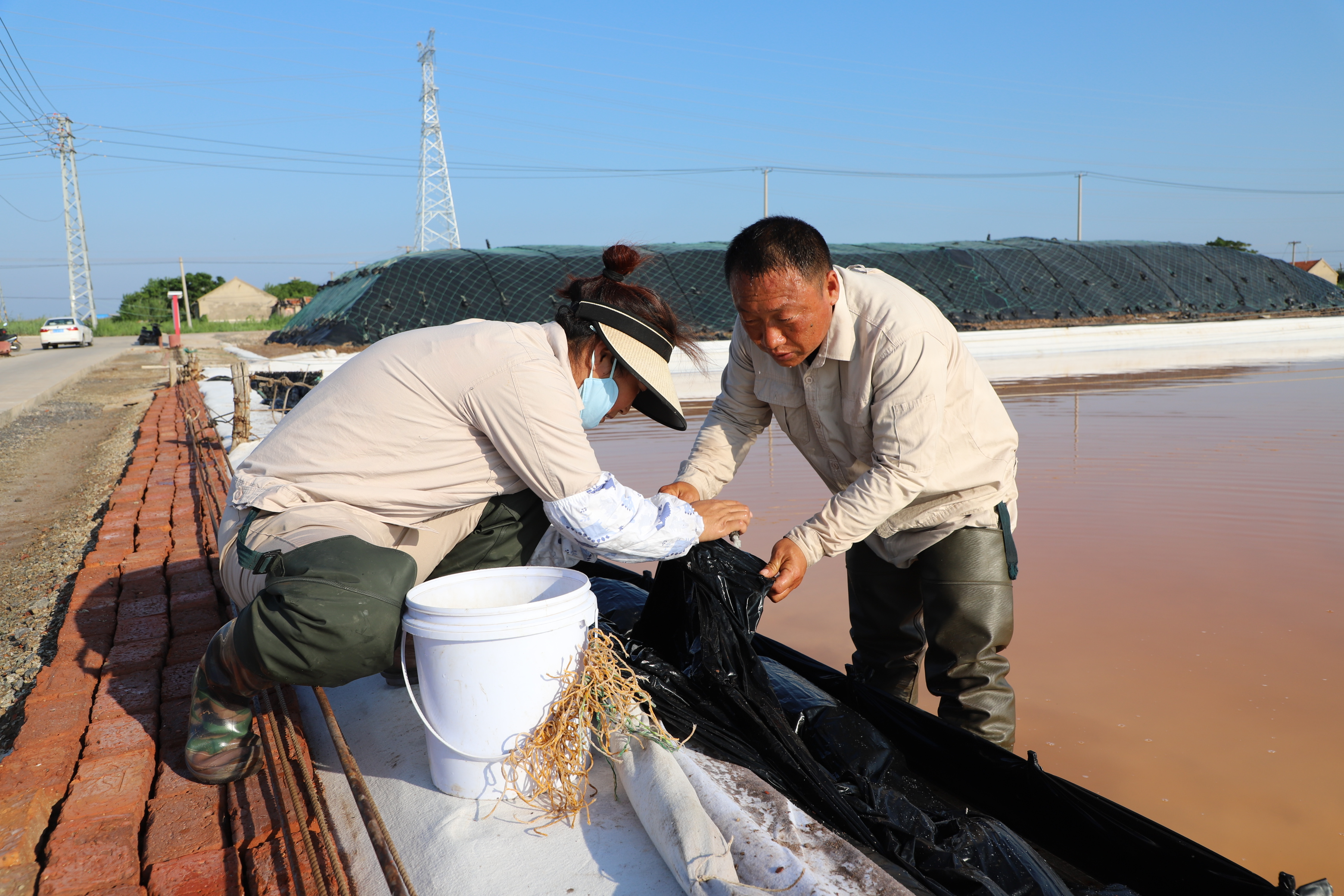 日曬制鹽的生產(chǎn)黃金季節(jié),也是職工最辛苦的一段時期。驕陽烈日下,萬畝銀灘鹵水潺潺、“五彩斑斕”,一線職工的戶外勞作泡在熱氣蒸人的鹵水里修補(bǔ)塑布、整修池堰、更新塑布揮汗如雨,池子里長著鹽,身上結(jié)著鹽霜,黑得發(fā)亮的皮膚在一次次曬脫皮后成了天然的“保護(hù)色”。一面面黨旗高高飄揚(yáng),一枚枚黨徽閃耀奪目,同心協(xié)力筑起了一座座堅不可摧的“紅色堡壘”,奏響了一曲倍增發(fā)展、砥礪奮進(jìn)的“紅色戰(zhàn)歌”,為這個“鹽”炎夏日增添了一抹亮麗的底色。(新河制鹽)
