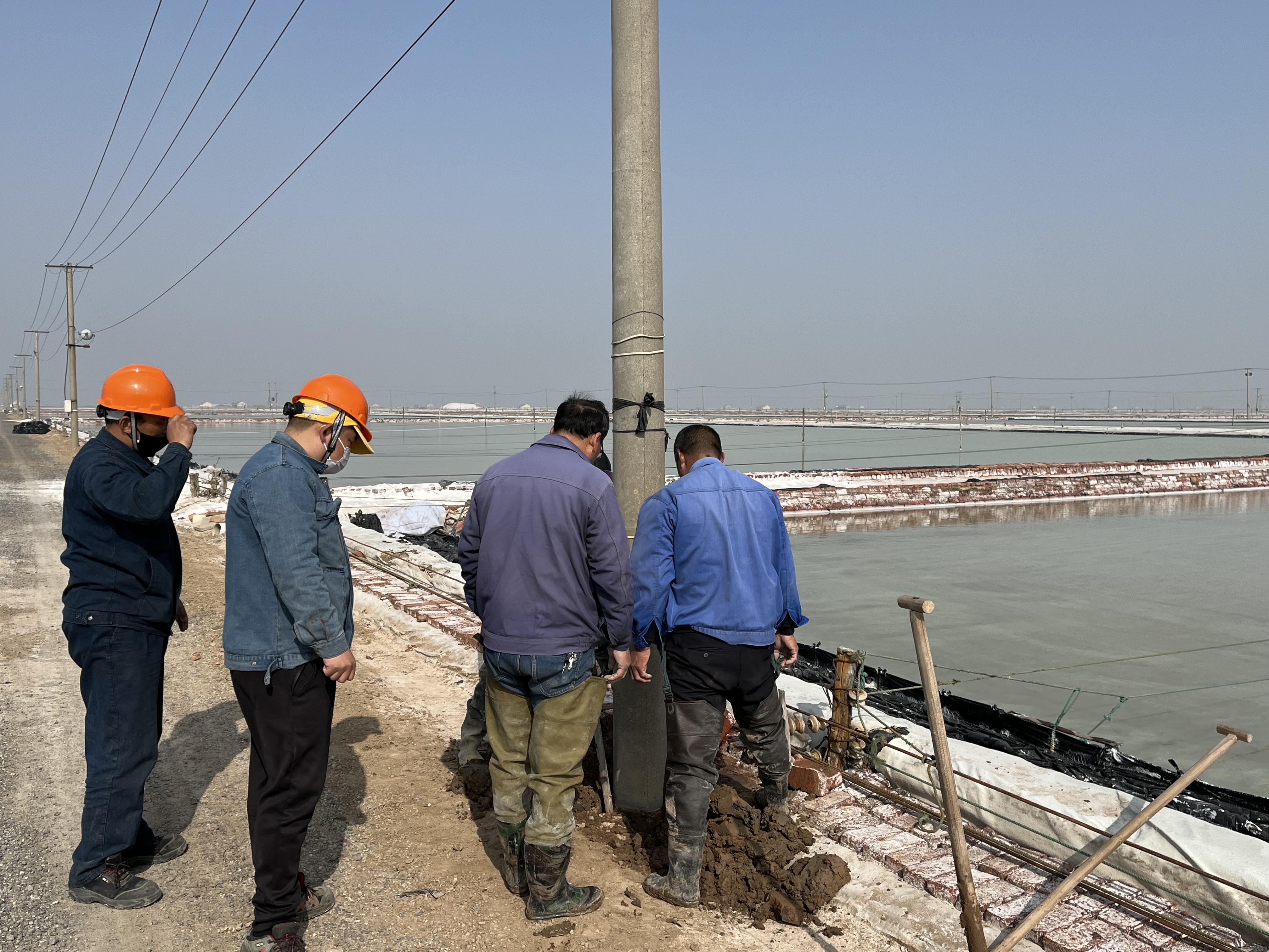 經(jīng)過多年的風(fēng)吹雨打,新河制鹽公司四班大池道邊上的電線杠出現(xiàn)大面積傾斜現(xiàn)象,嚴(yán)重影響安全生產(chǎn)。9日上午,公司安全負(fù)責(zé)人趙斯忠,組織部分后勤及班組人員一起為整改工作出點(diǎn)子,解決本次隱患整改的難點(diǎn)。