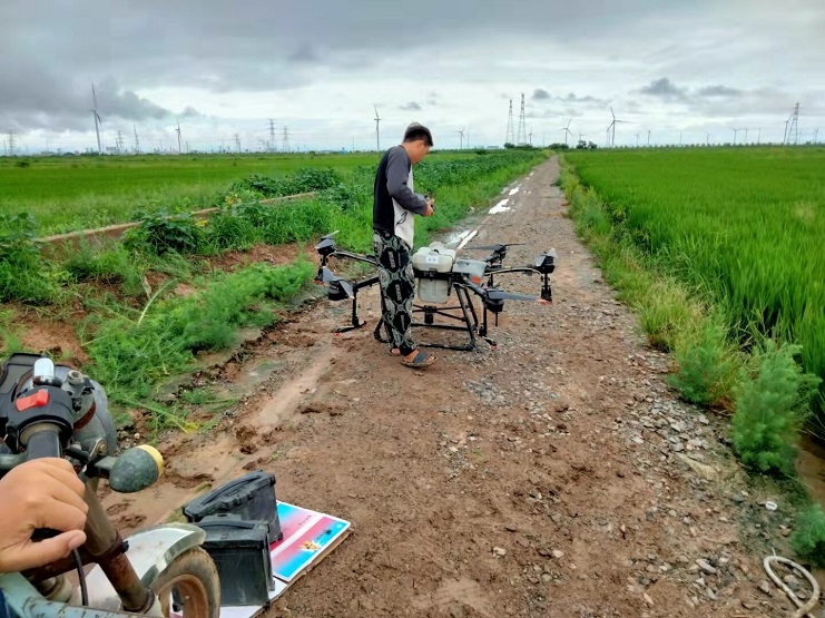 近日,明威公司農(nóng)田水稻進(jìn)入齊穗期,是水稻形成產(chǎn)量的關(guān)鍵時期,為切實做好水稻該期病蟲害的防治工作,明威公司組織員工在下雨間隙,用一臺無人機(jī),對二灣種植區(qū)的稻田噴施除蟲農(nóng)藥——齊穗藥,以增強(qiáng)水稻對病蟲害的防控能力。