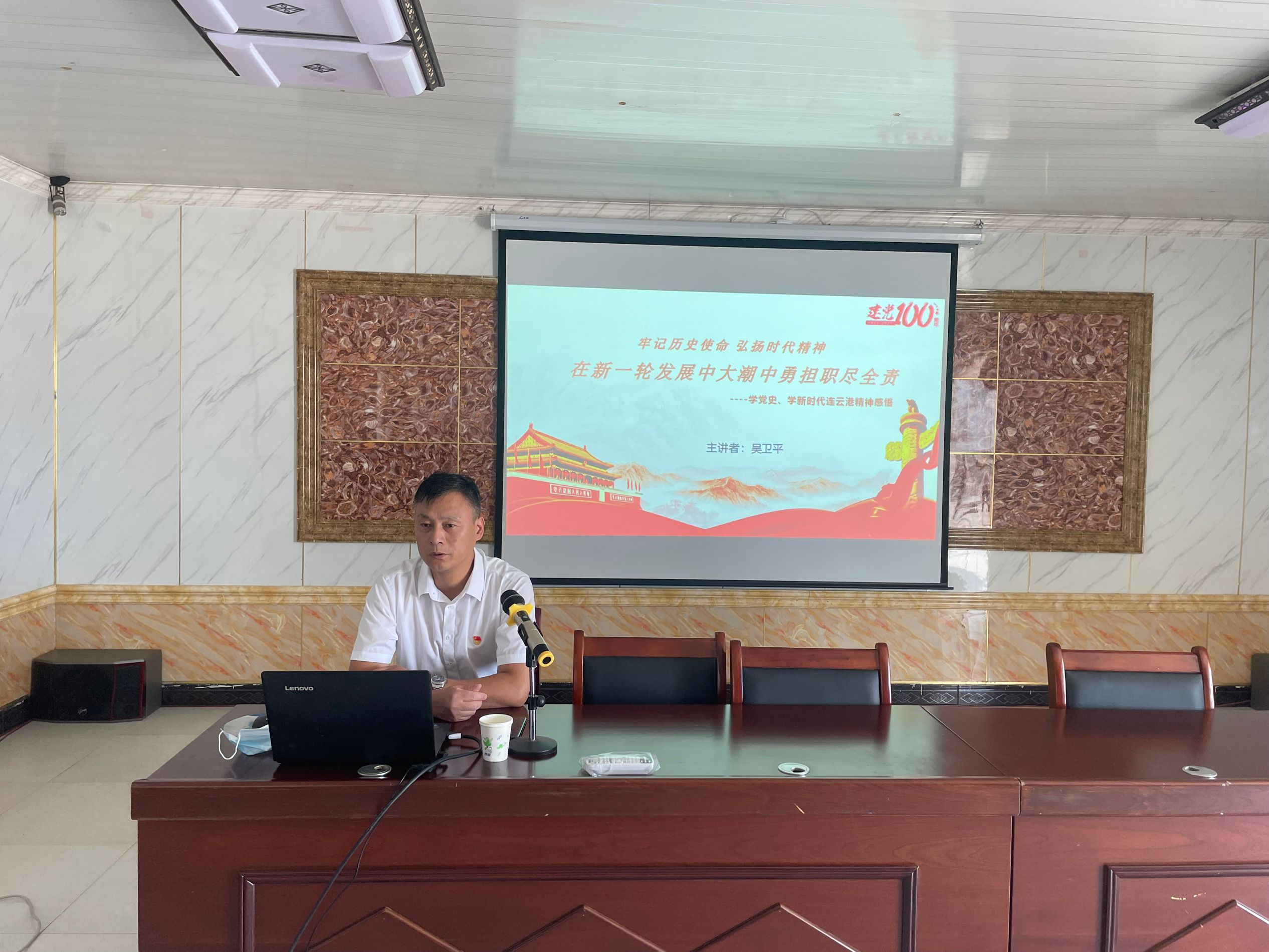 吳衛(wèi)平以《在新一輪發(fā)展中大潮中勇?lián)?zé),盡全責(zé)---學(xué)黨史,學(xué)新時代連云港精神感悟》為黨課主題,圍繞四個章節(jié)展開講述:第一章、學(xué)黨史,銘記革命先輩的無私奉獻精神,提高政治意識,第二章、學(xué)講話,堅信中國特色社會主義發(fā)展方向,提升政治站位,第三章、學(xué)時代,堅定新時代連云港精神必勝信心,踐行高質(zhì)量發(fā)展,第四章、學(xué)本領(lǐng),提升理論指導(dǎo)實踐能力素養(yǎng),樹立奮斗決心。